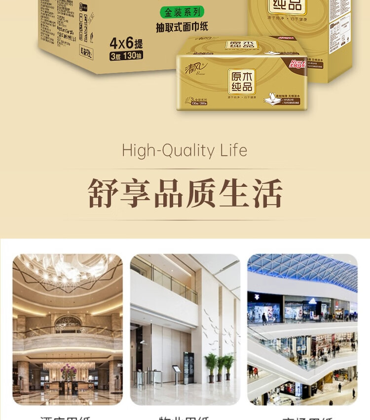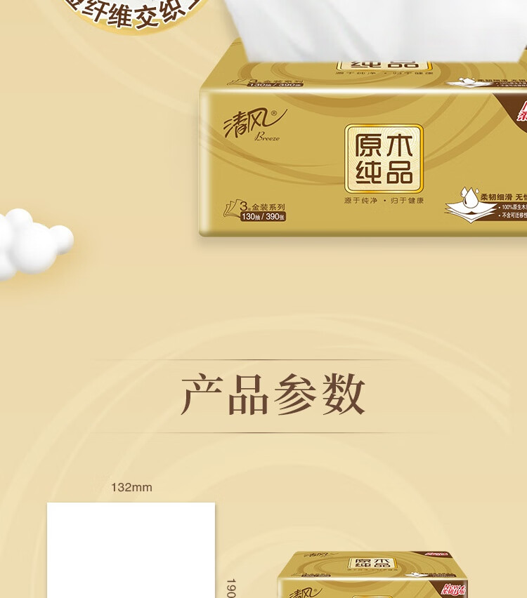 家庭清洁/纸品  > 清洁纸品  > 抽纸  >  清风  >  清风清风纸巾原木金装抽纸3层130抽纸巾24包整箱批发(5 箱) BR43A0J4/箱