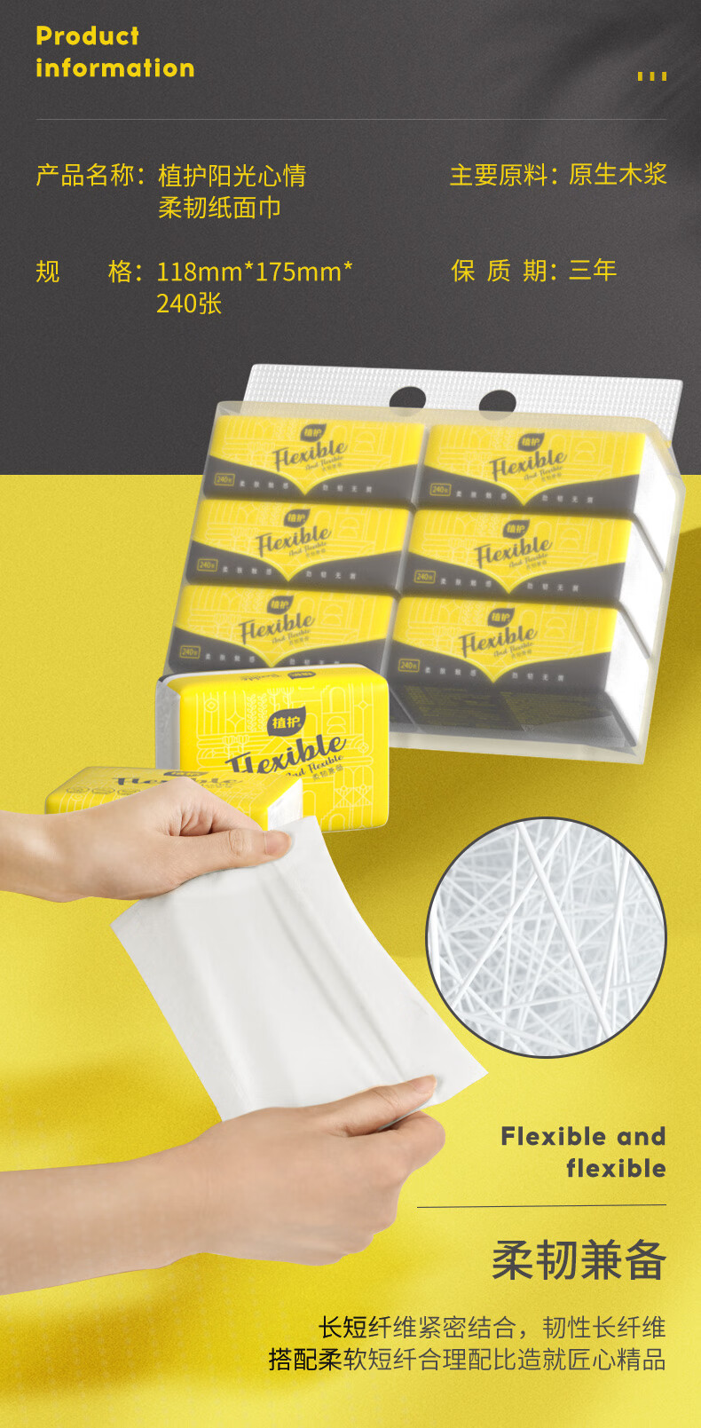 • 商品名称:植护阳光心情纸面纸抽纸4层 60抽*6包(1提) 阳光心情抽纸4层 60抽*6包(1提)/提