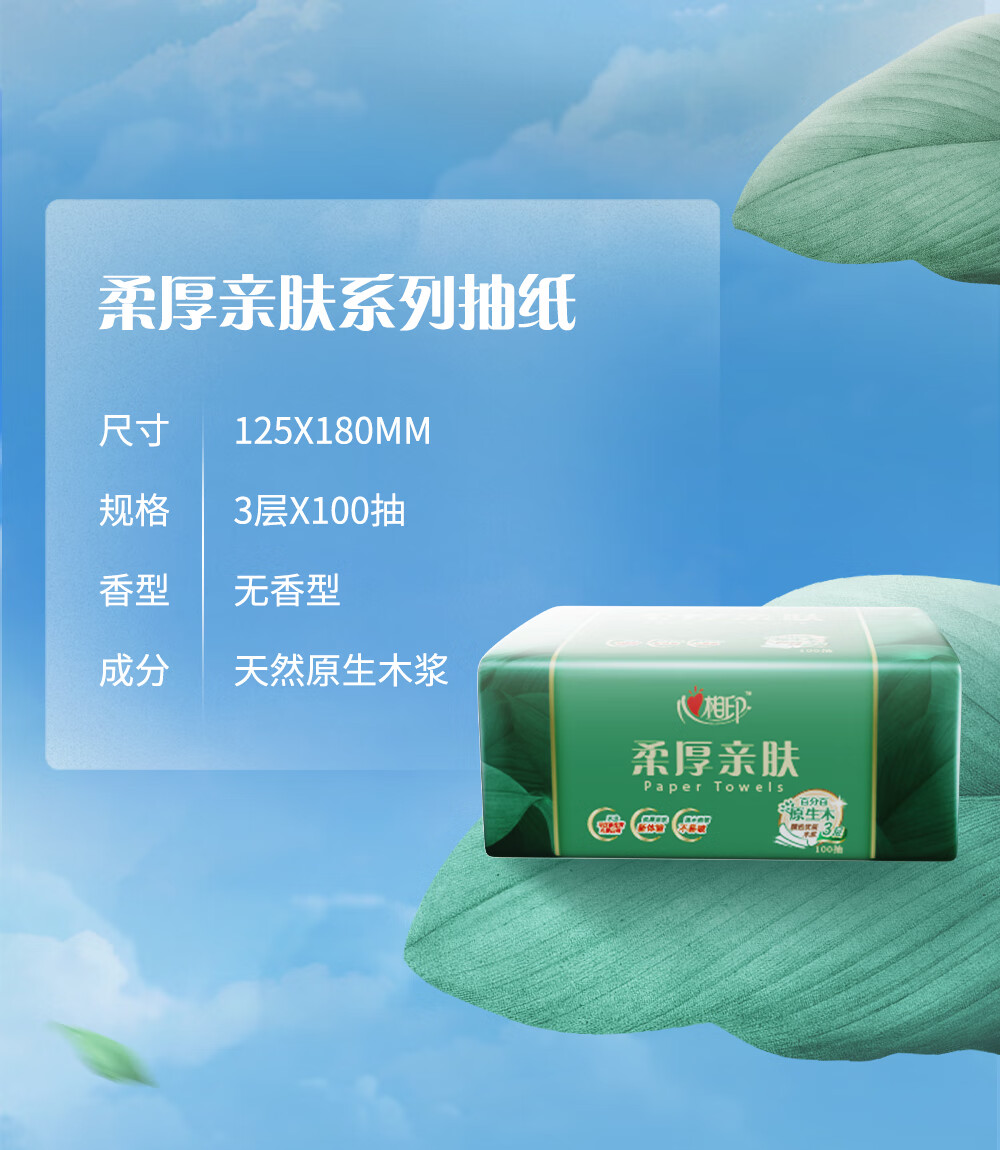 • 商品名称:心相印 商用柔厚亲肤三层100抽塑装纸面巾3包*1提 DT100 DT100/提