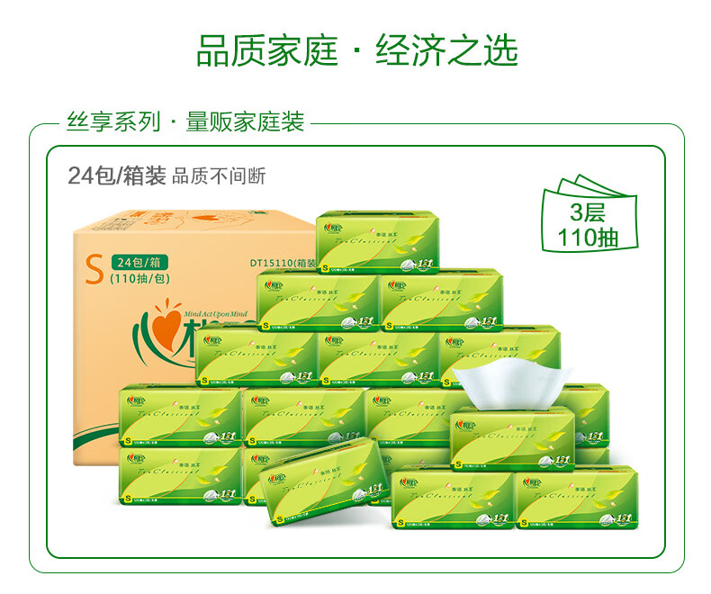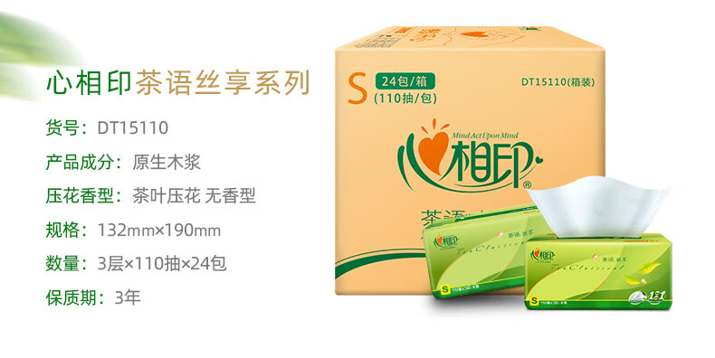 • 商品名称:心相印 茶语丝享24包110抽三层塑装纸面巾 DT15110(箱装) DT15110/箱