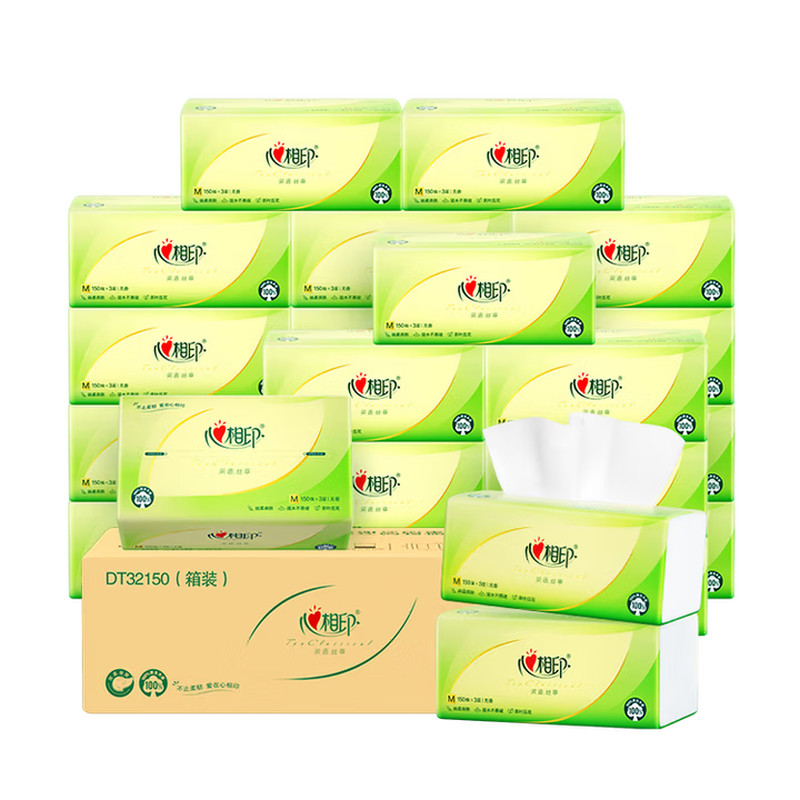 • 商品名称:心相印抽纸 餐巾纸茶语丝享3层150抽*24包加大M码 纸巾 卫生纸整箱 抽纸/箱