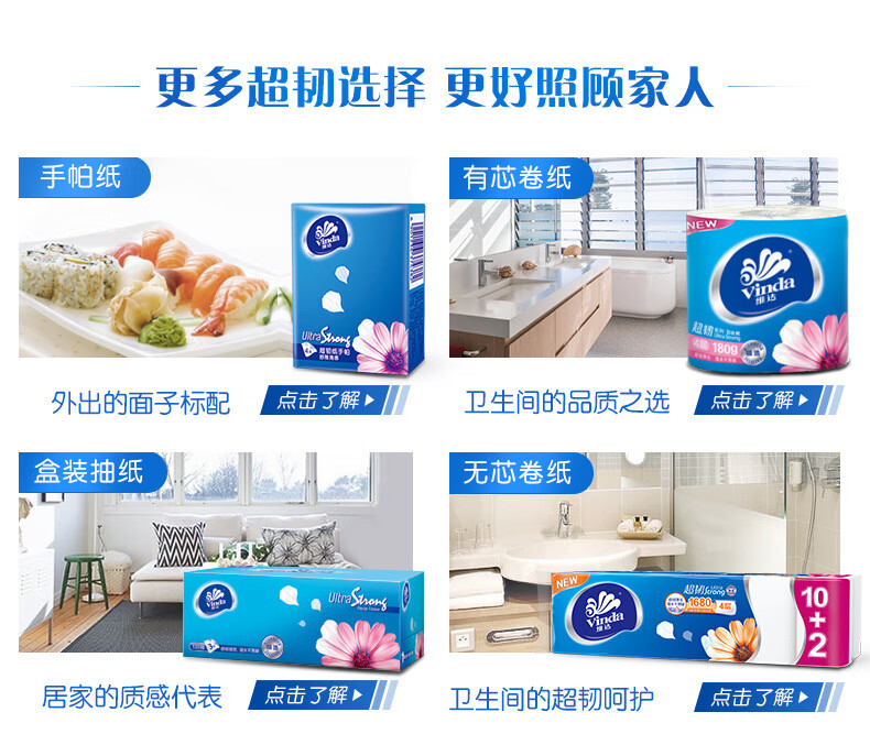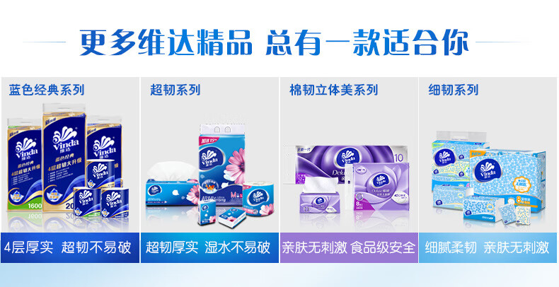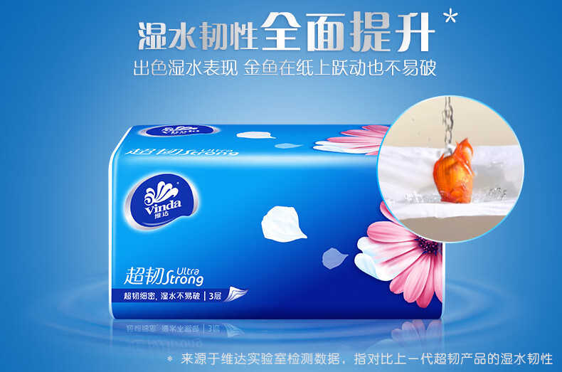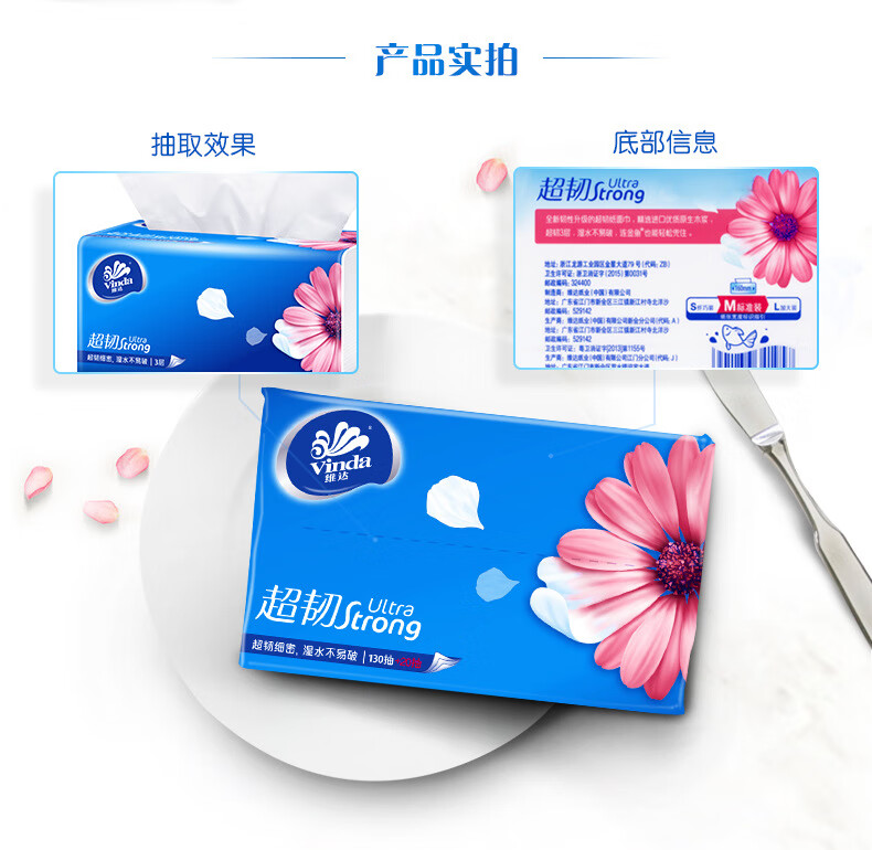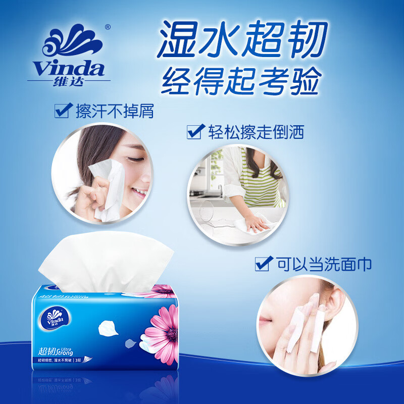 • 商品名称:维达(Vinda)抽纸【赵丽颖推荐】超韧150抽*24包M码 湿水不易破 纸巾 整箱 V2182-A/箱