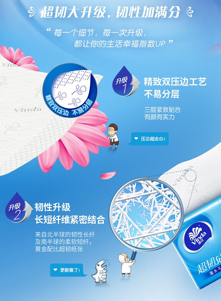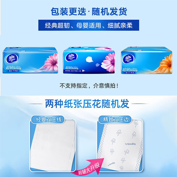 包装清单: 维达超韧抽取面巾3层S码120抽×20包V2223-B*1箱