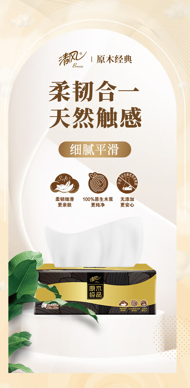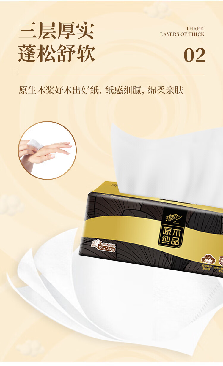 家庭清洁/纸品  > 清洁纸品  > 抽纸  >  清风  >  清风原木纯品抽纸3层100抽24包整箱装BR12XSC24BC 1箱24包/包