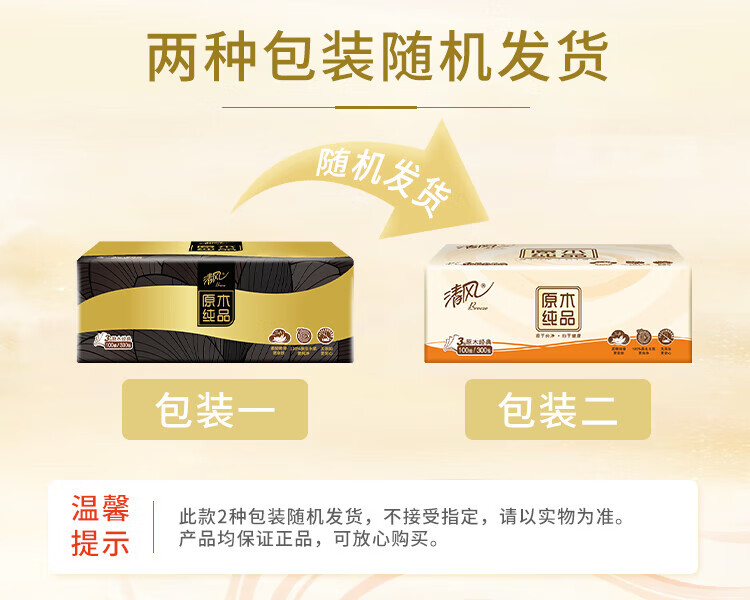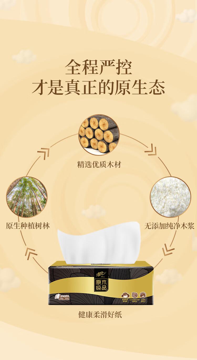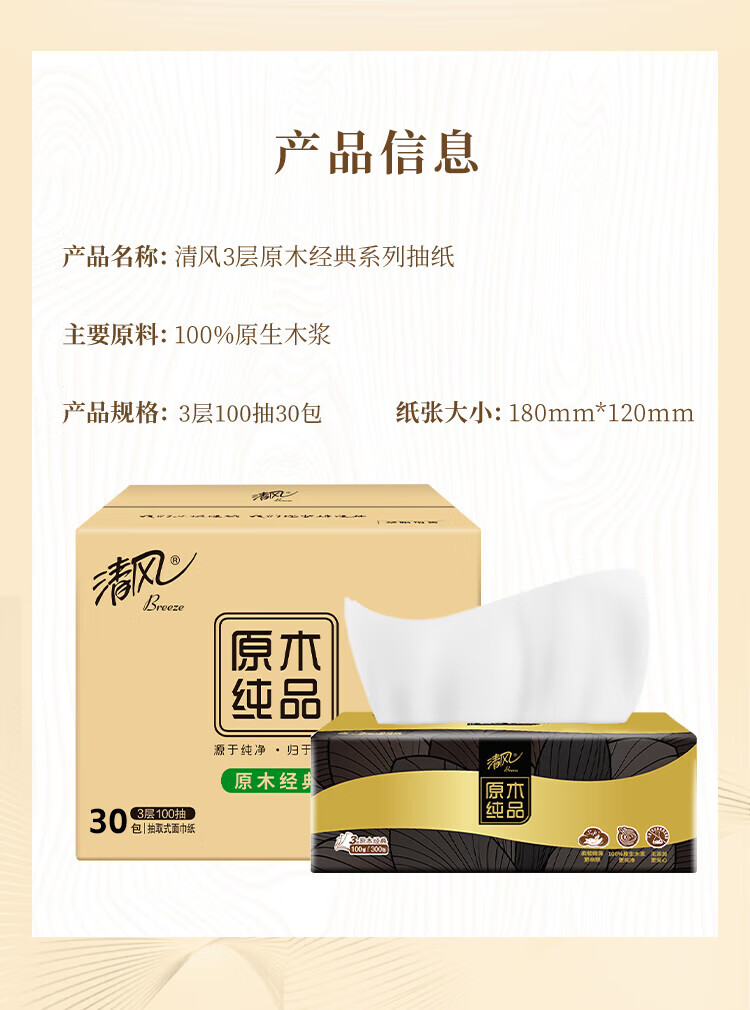 包装清单: 清风原木纯品抽纸3层100抽24包整箱装BR12XSC24BC
