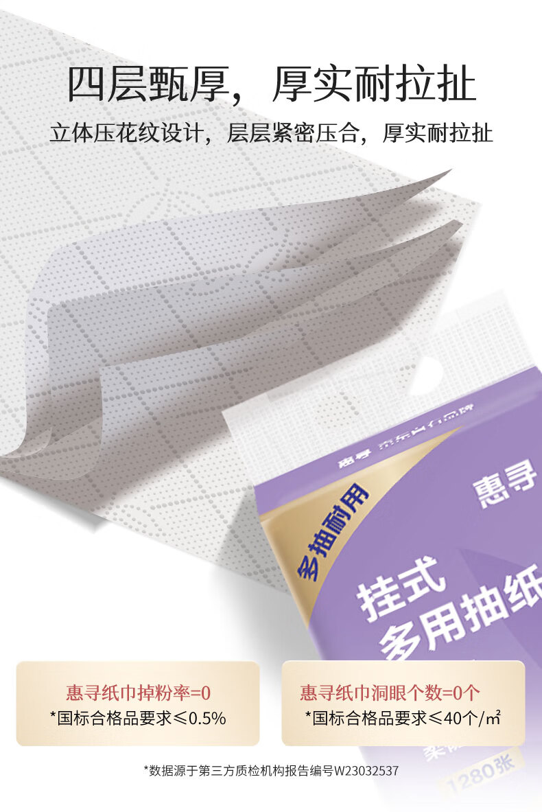 • 商品名称:惠寻惠寻底部抽1280张*2提 4层加厚挂壁式抽纸面巾纸擦手纸耐用 320抽*2提/提