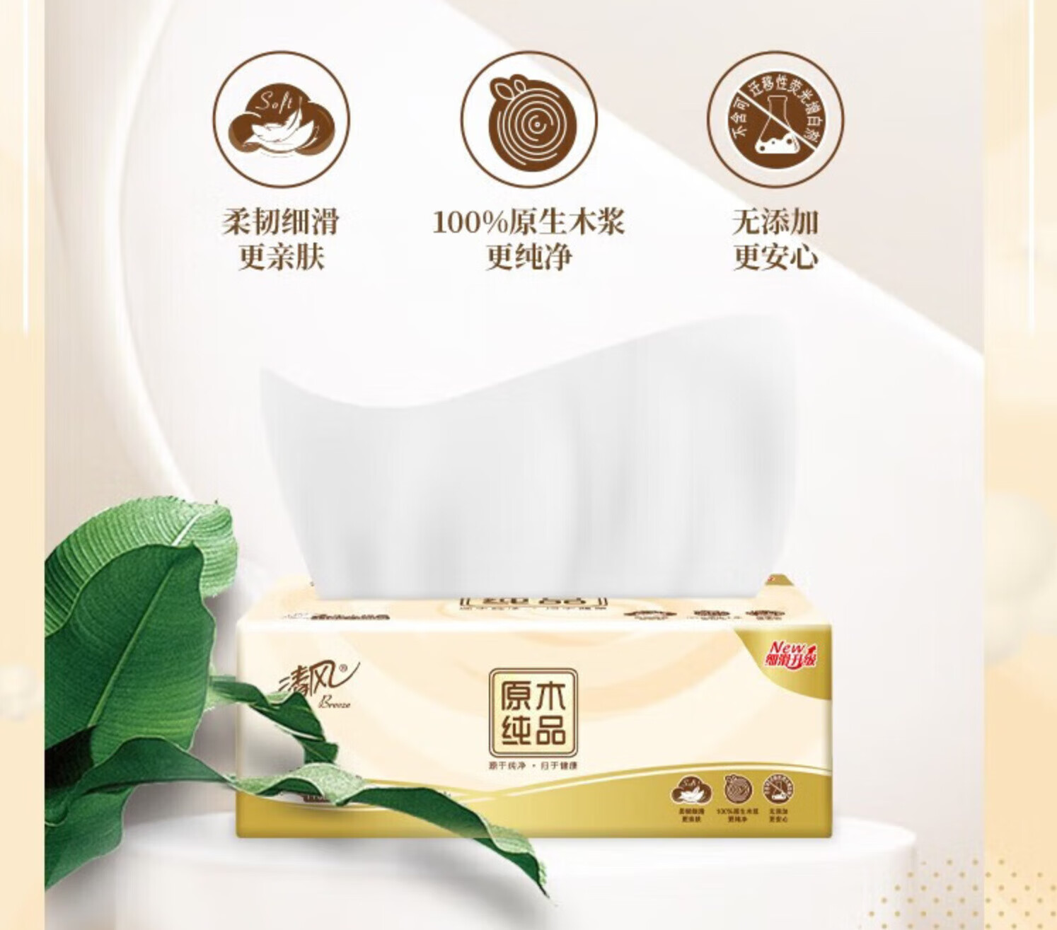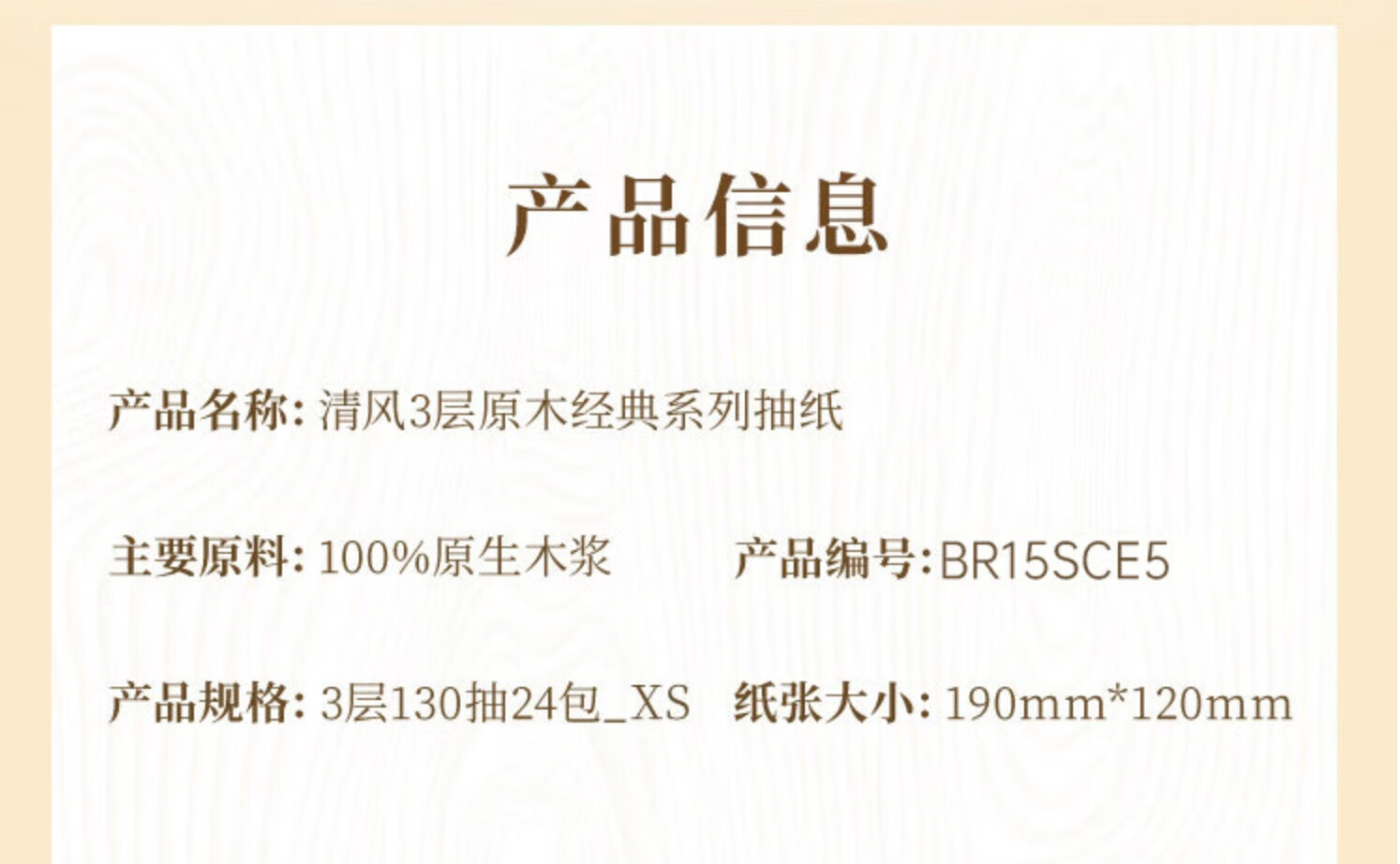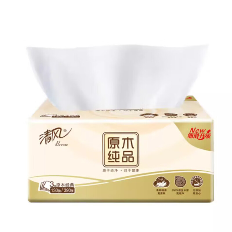 家庭清洁/纸品  > 清洁纸品  > 抽纸  >  清风  >  清风 原木纯品系列抽纸3层130抽*24包整箱抽取式面巾纸BR15SCE5 BR15SCE5/箱