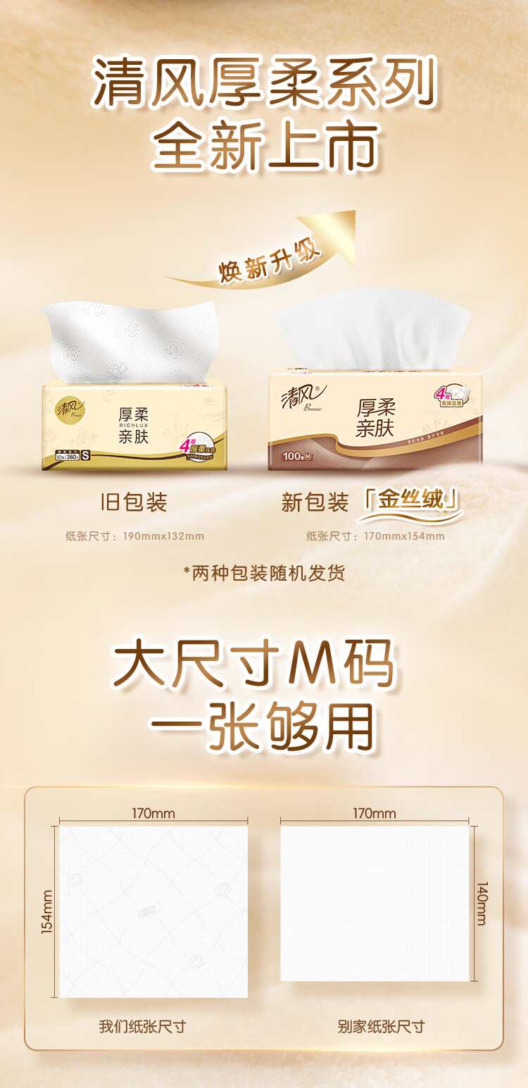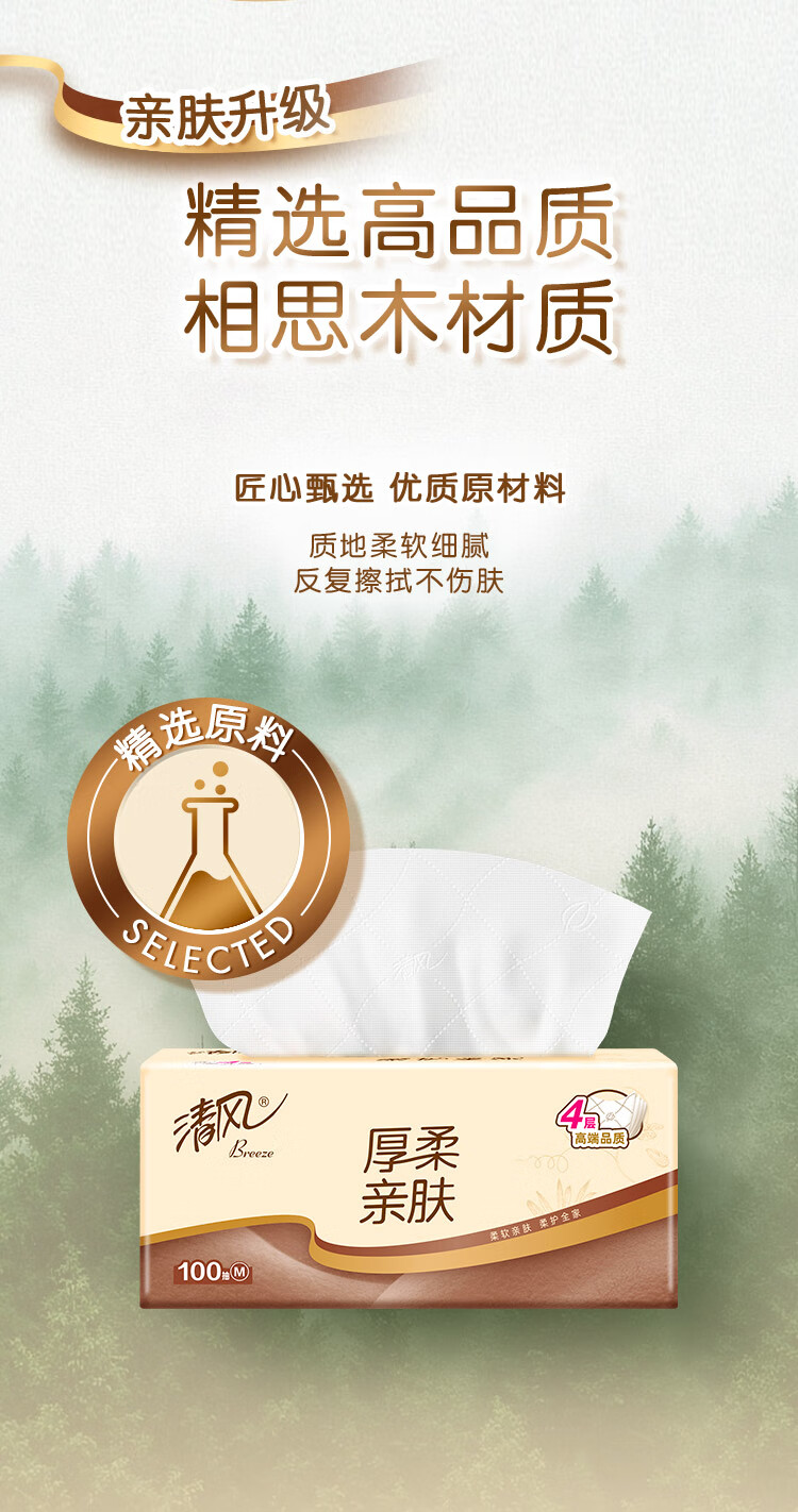 家庭清洁/纸品  > 清洁纸品  > 抽纸  >  清风  >  清风【李昀锐同款】抽纸 原木厚柔 4层100抽*24包M码 纸巾 卫生纸整箱 抽取式面纸/箱