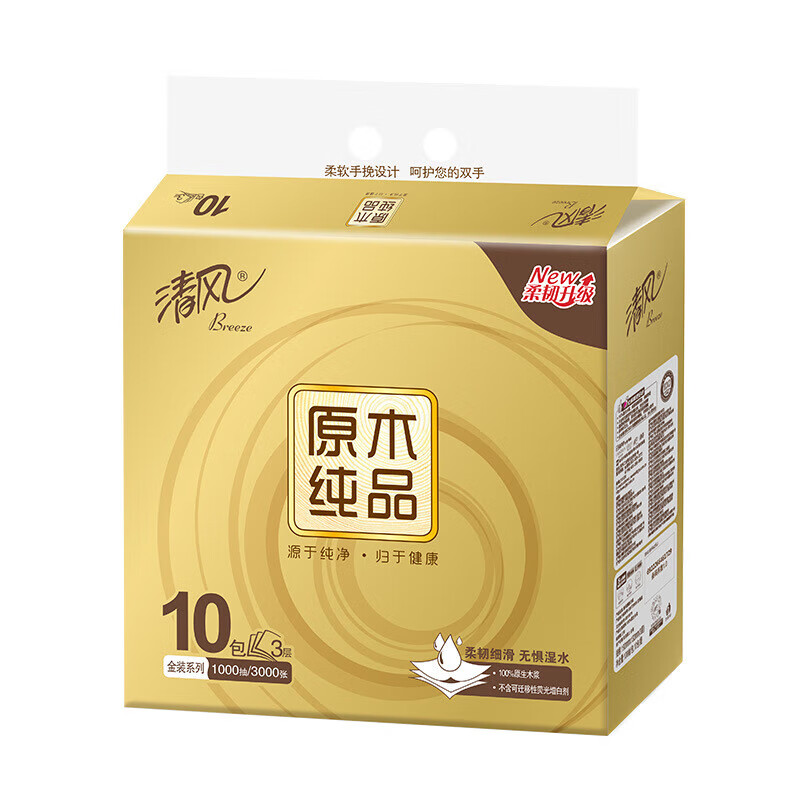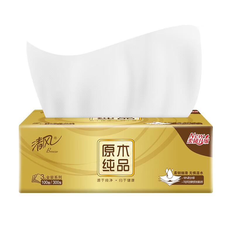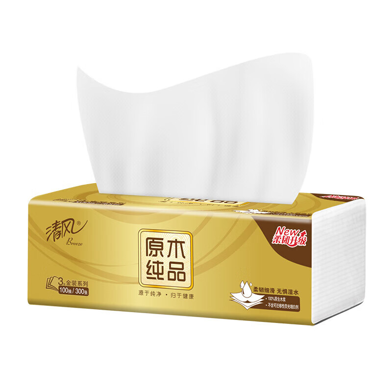 家庭清洁/纸品  > 清洁纸品  > 抽纸  >  清风  >  清风 金装系列3层100抽厚实质感家用商用10包抽取式面巾纸BRA2SJ BRA2SJ/箱