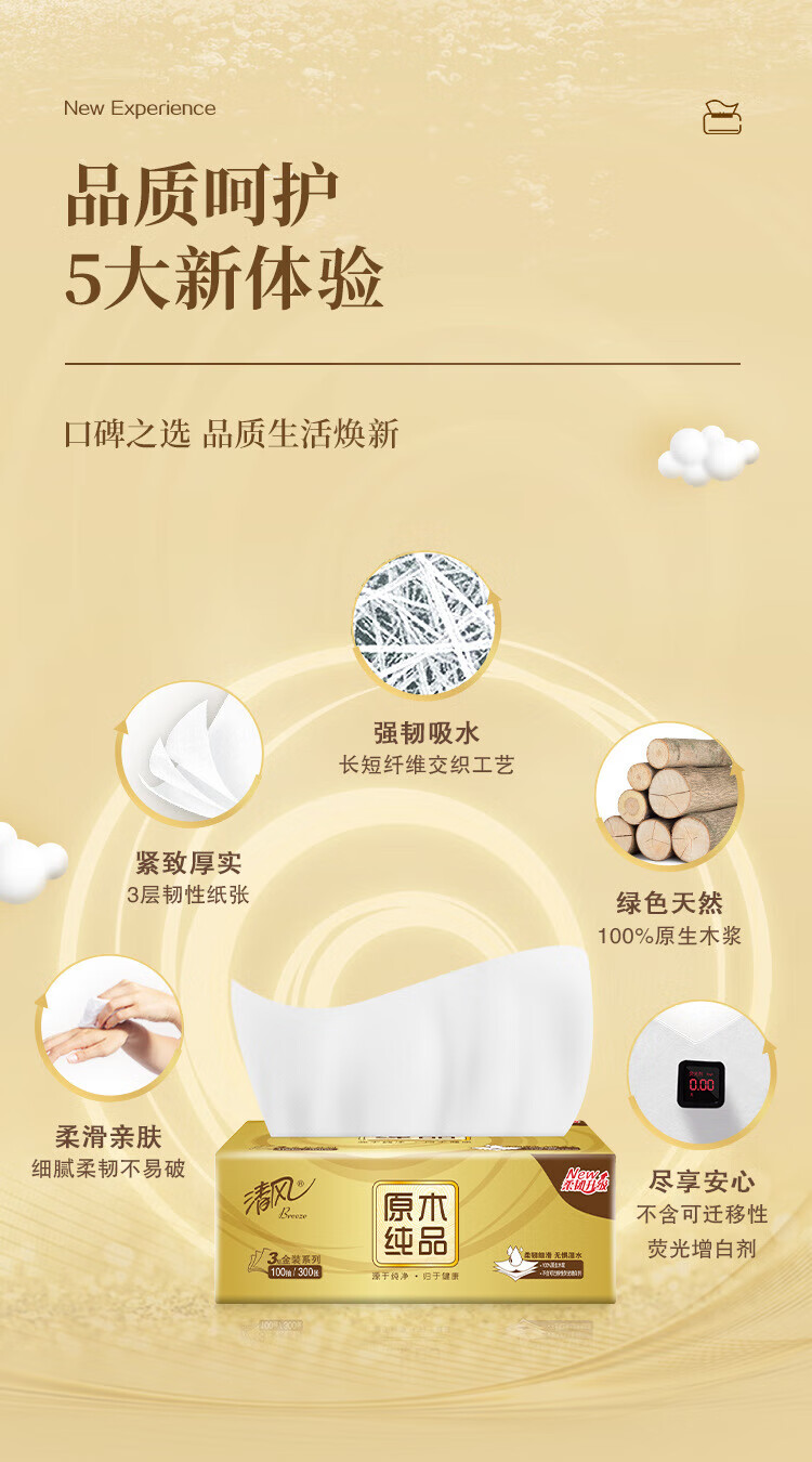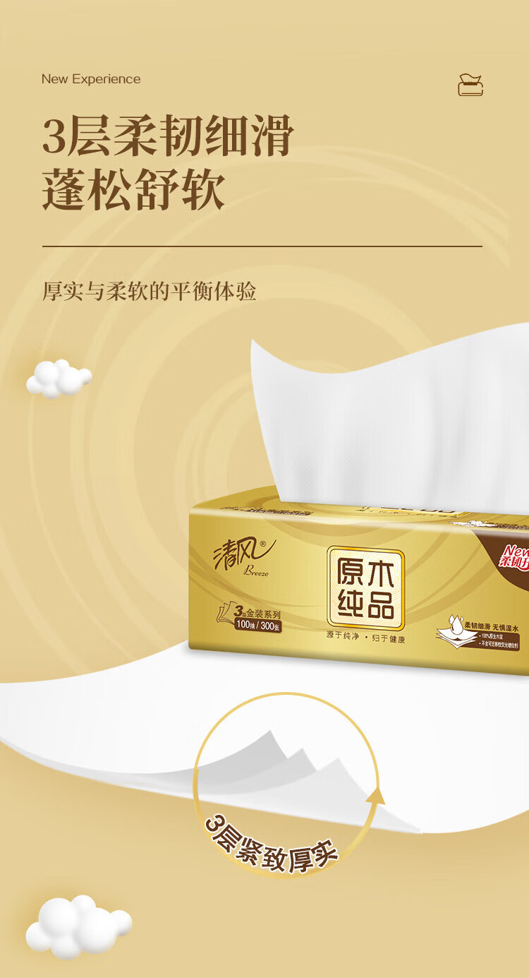 • 商品名称:清风 金装系列3层100抽厚实质感家用商用10包抽取式面巾纸BRA2SJ BRA2SJ/箱