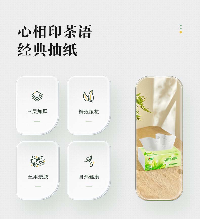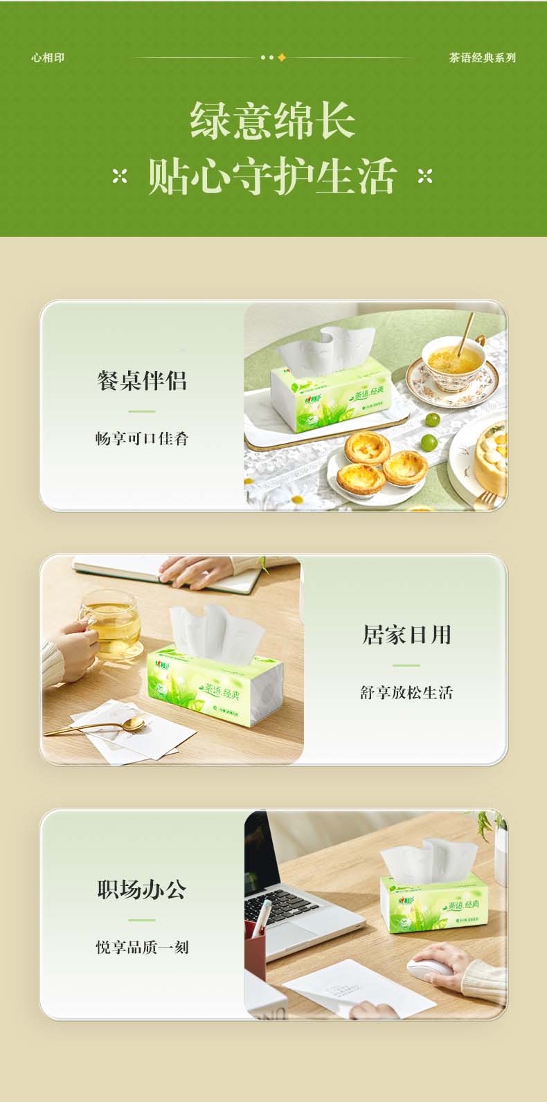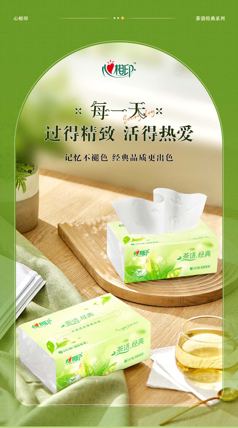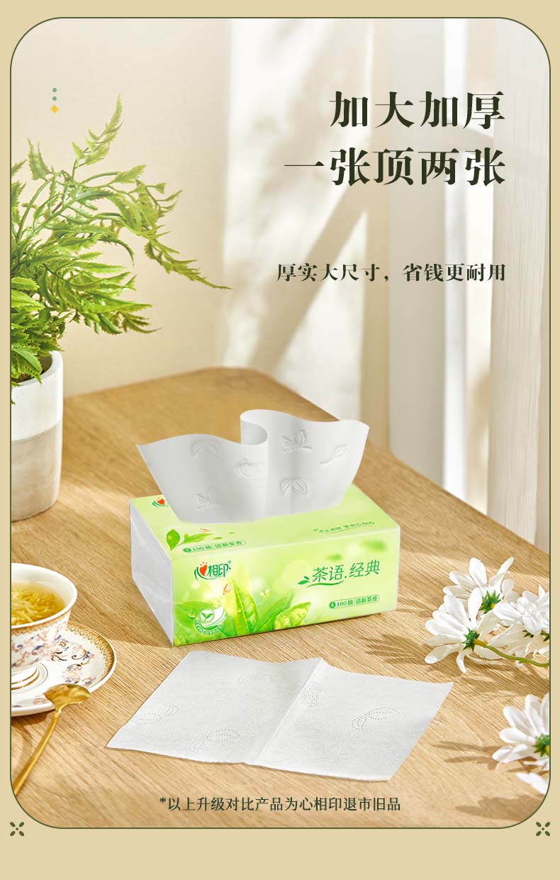 家庭清洁/纸品  > 清洁纸品  > 抽纸  >  心相印  >  心相印 茶语抽纸3层100抽24包 DT20100(箱装) DT20100/包