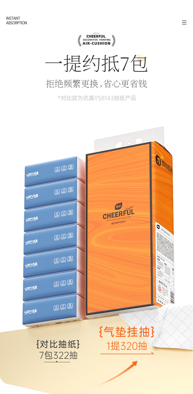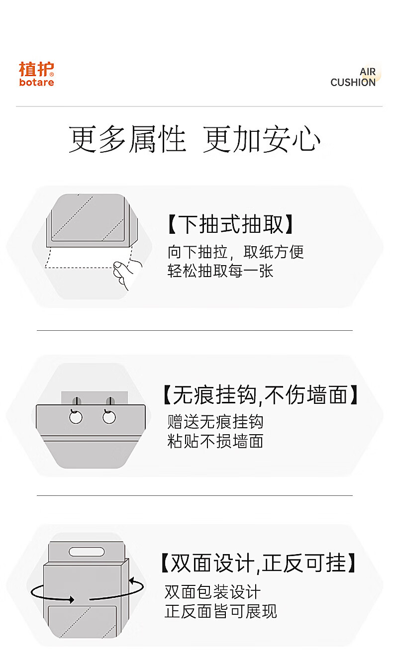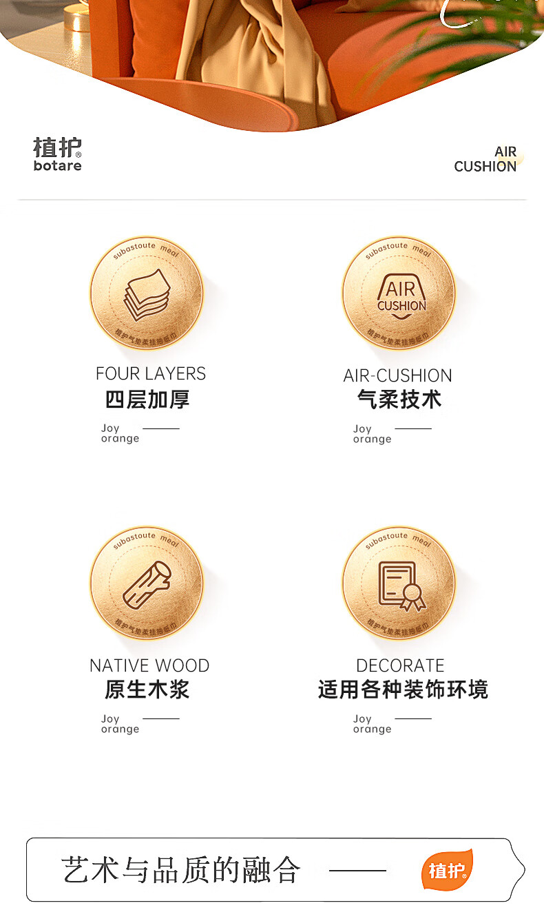 包装清单: 植护 悦色橙气垫挂抽纸面巾 175*175/4层 320抽 4提/箱