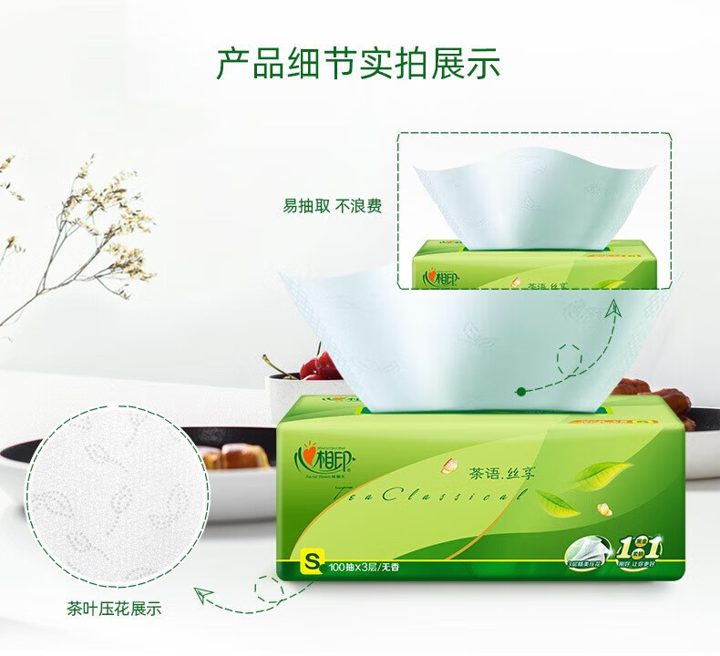 家庭清洁/纸品  > 清洁纸品  > 抽纸  >  心相印  >  心相印抽纸 茶语丝享3层100抽5包软抽纸巾实惠装(包邮) DT15100/提