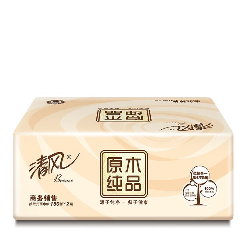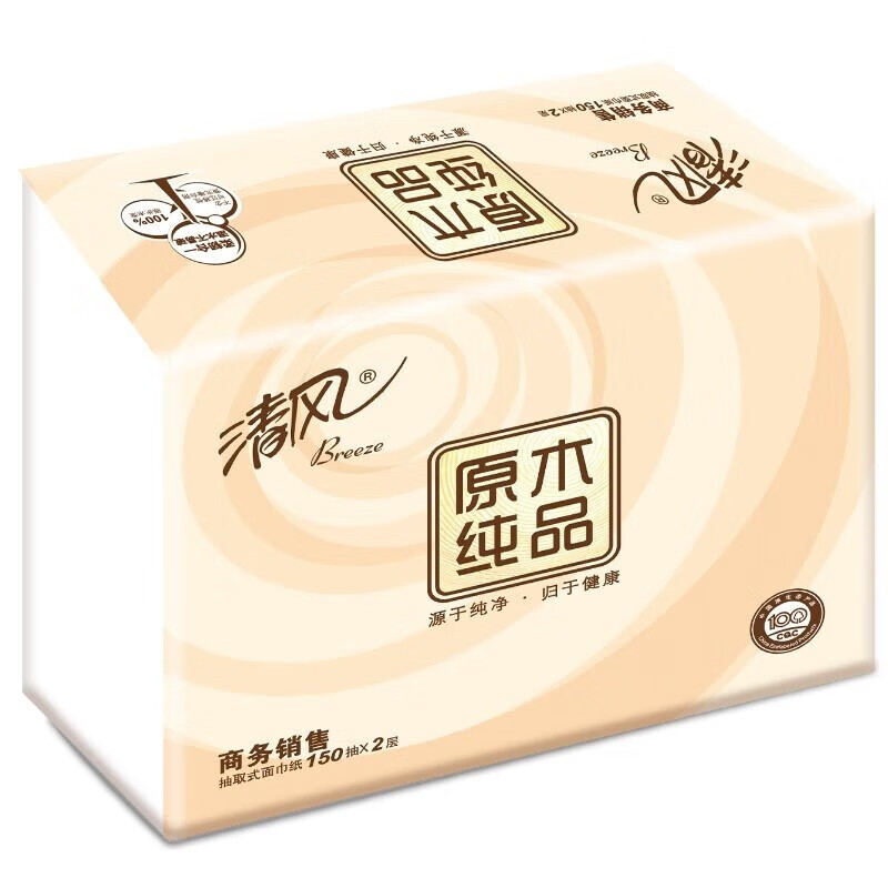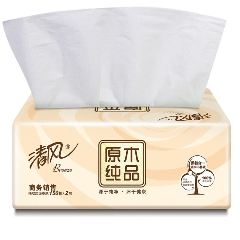 家庭清洁/纸品  > 清洁纸品  > 抽纸  >  清风  >  清风家用商务办公面巾纸餐巾纸原木纯品抽纸2层150抽*60包 BR38A61 BR38A61/箱