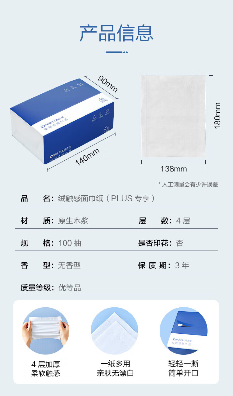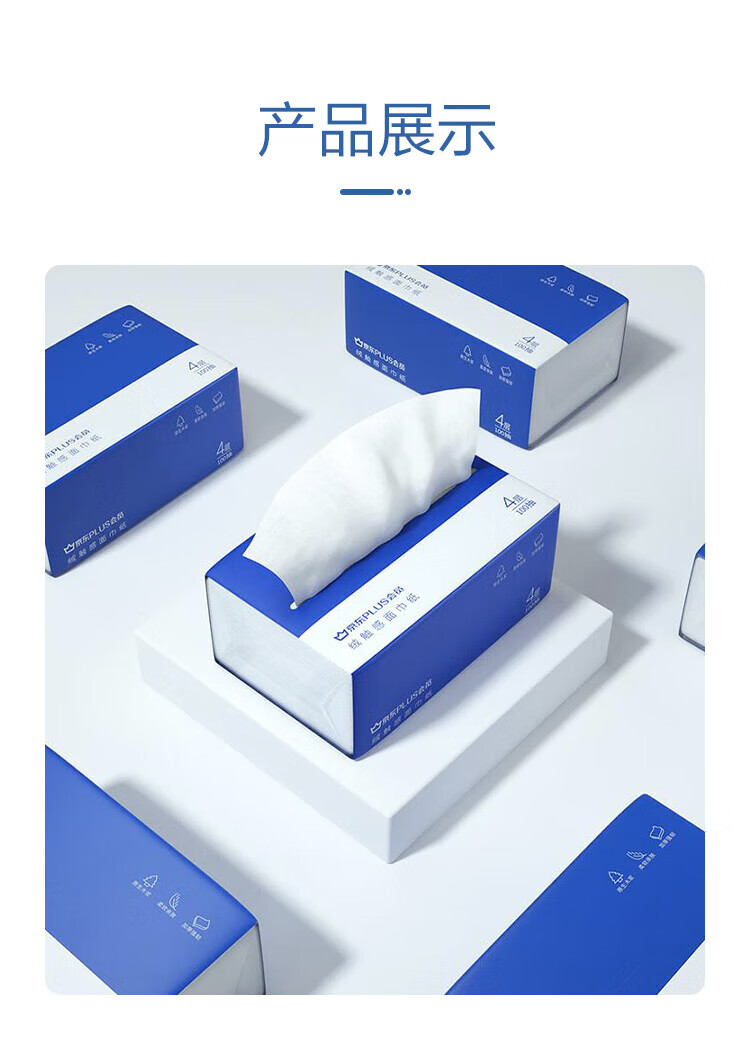 商品名称: 京东京造X京东PLUS会员联名款纸巾 4层加厚100抽*20包卫生纸抽纸京东自营 plus会员抽纸/箱