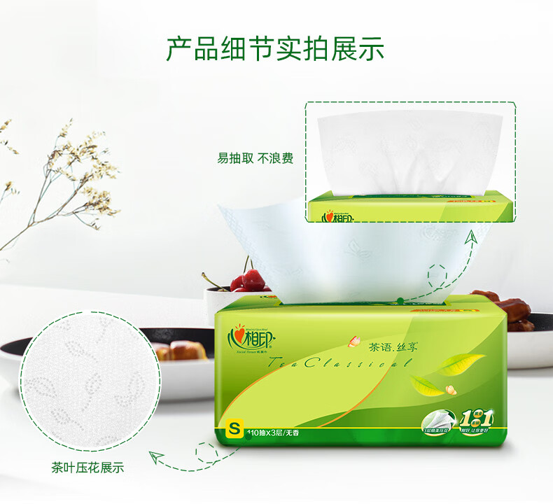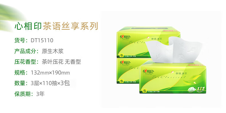 • 商品名称:心相印 茶语丝享系列3包110抽三层塑料纸面巾 DT15110 DT15110/包