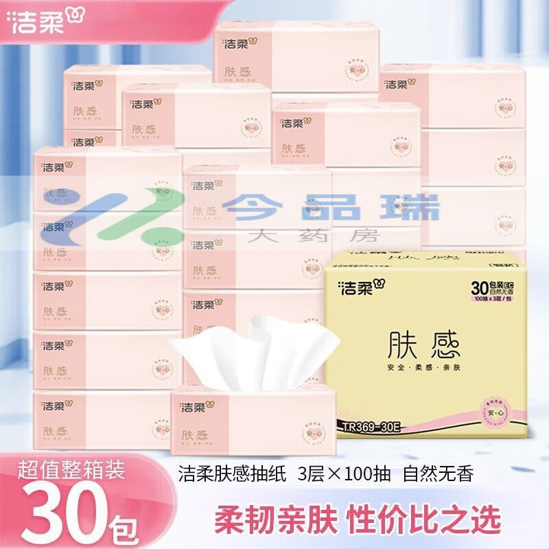 家庭清洁/纸品  > 清洁纸品  > 抽纸  >  洁柔  >  洁柔3层100抽纸巾30包整箱装TR369-30E TR369-30E/箱