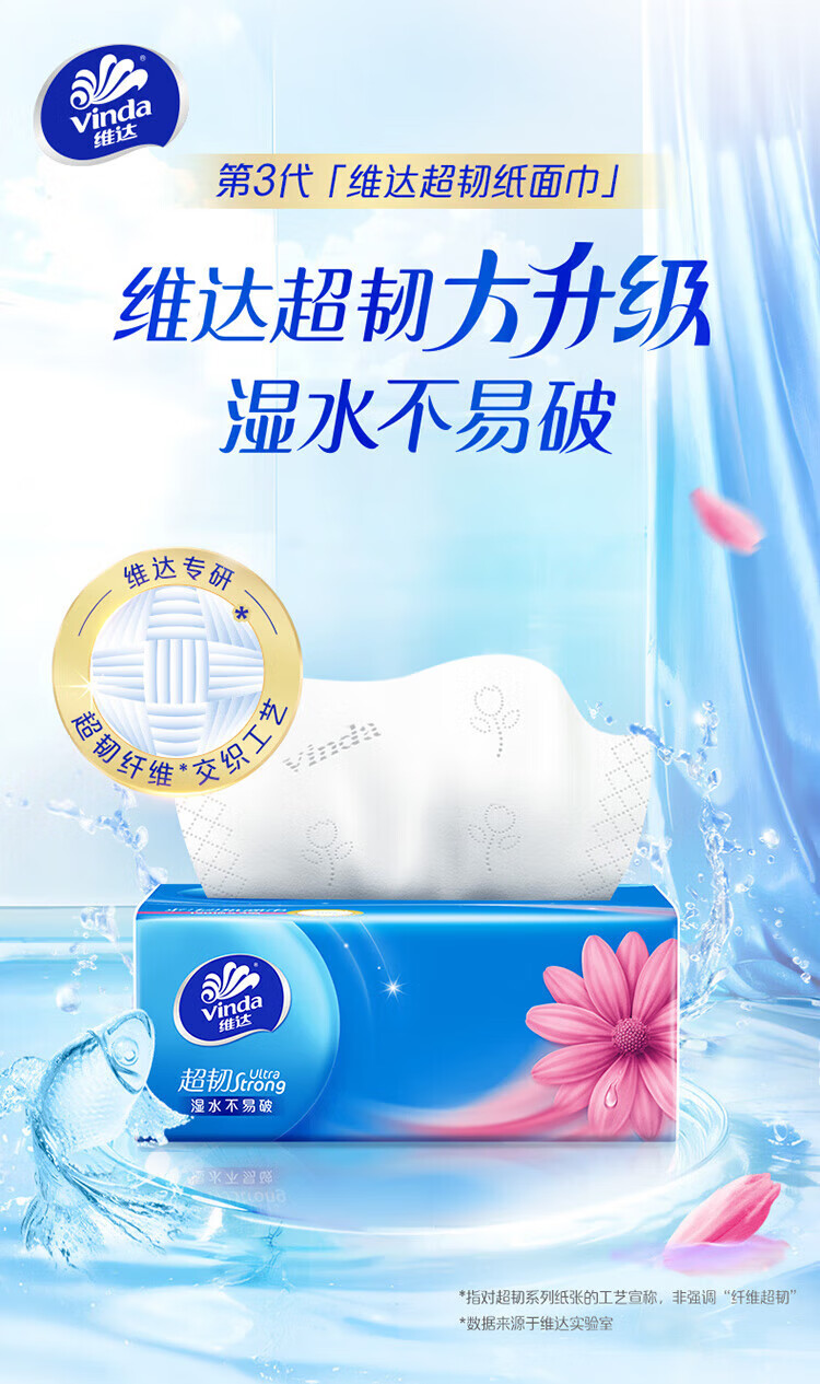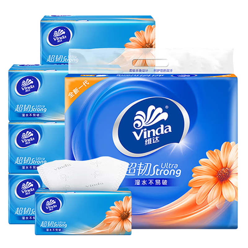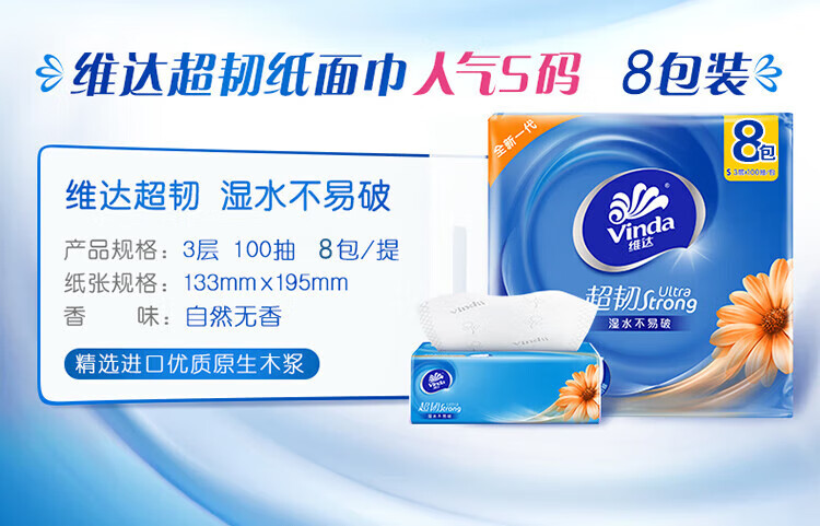 家庭清洁/纸品  > 清洁纸品  > 抽纸  >  维达/Vinda  >  维达V2287F 维达超韧100抽3层S码抽纸8包/提 1提 V2287F/提