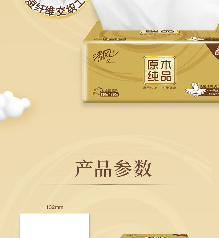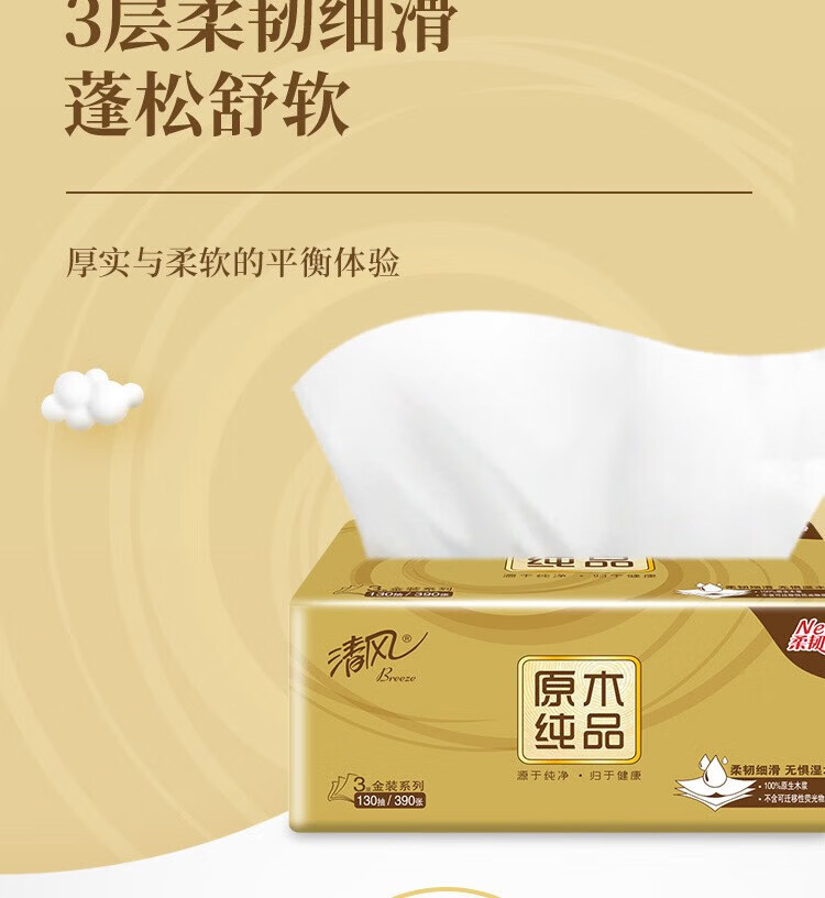 家庭清洁/纸品  > 清洁纸品  > 抽纸  >  清风  >  清风抽纸原木金装面巾纸3层130抽24包整箱家用商用实惠纸巾BR43AOJ4 BR43AOJ4/箱