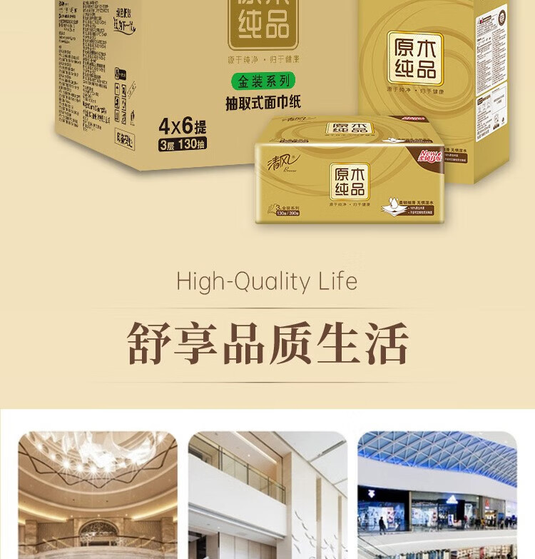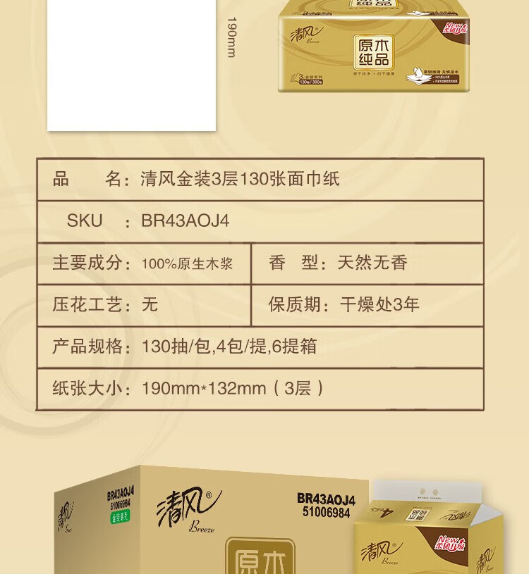 • 商品名称:清风抽纸原木金装面巾纸3层130抽24包整箱家用商用实惠纸巾BR43AOJ4 BR43AOJ4/箱