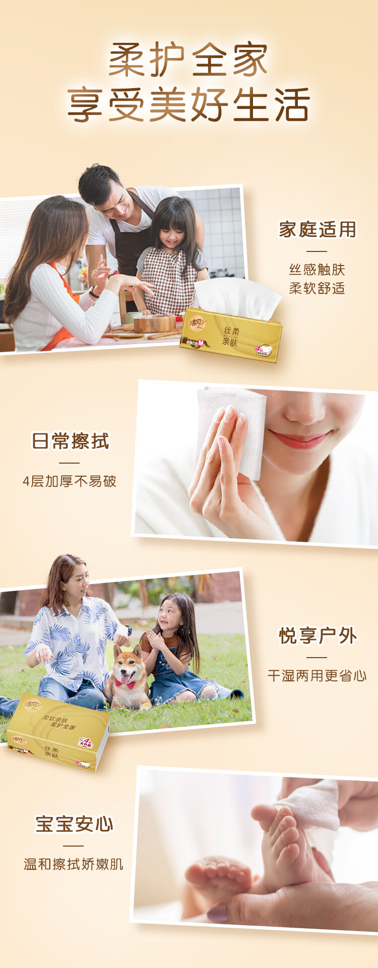 包装清单: 抽纸 原木金装 4层90抽*3包S码 湿水不易破 卫生纸巾 餐巾纸