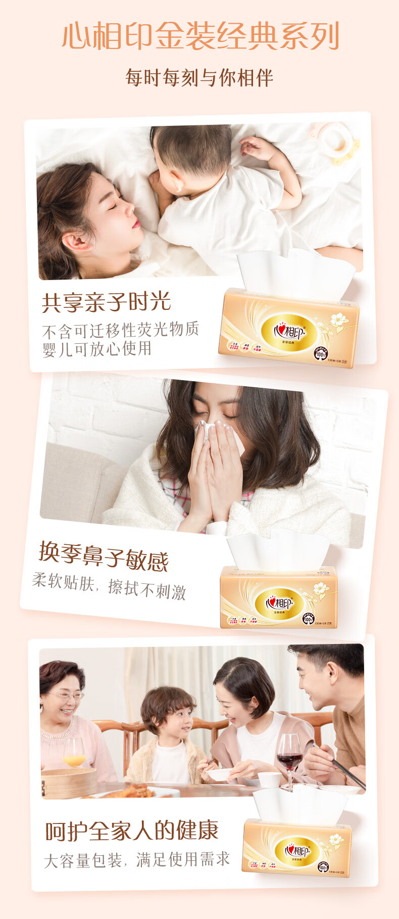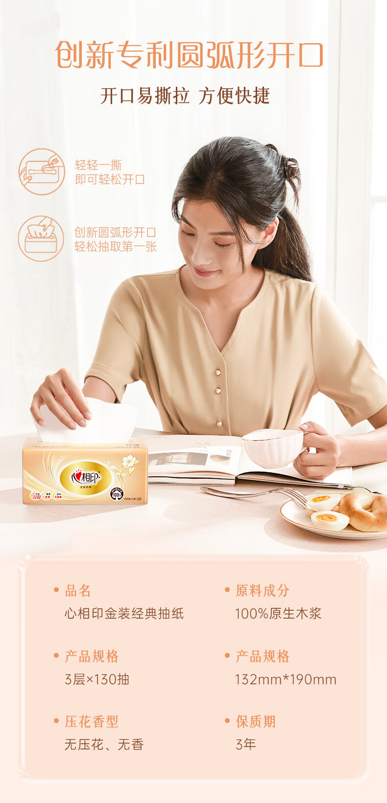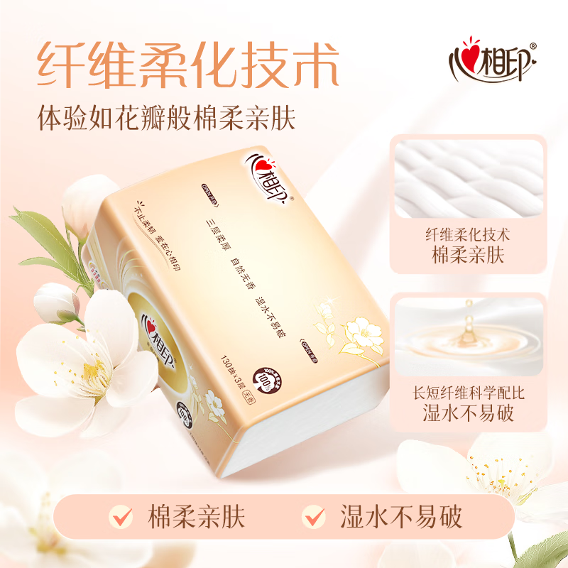 • 商品名称:心相印抽纸 经典系列 3层130抽*6包S码 100%原生木浆 软抽 纸巾 新旧发 抽纸/提