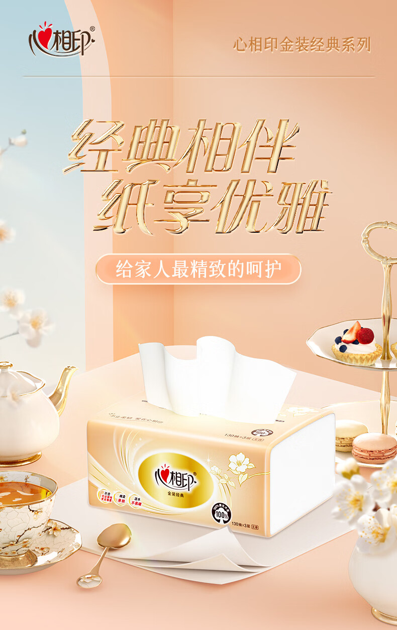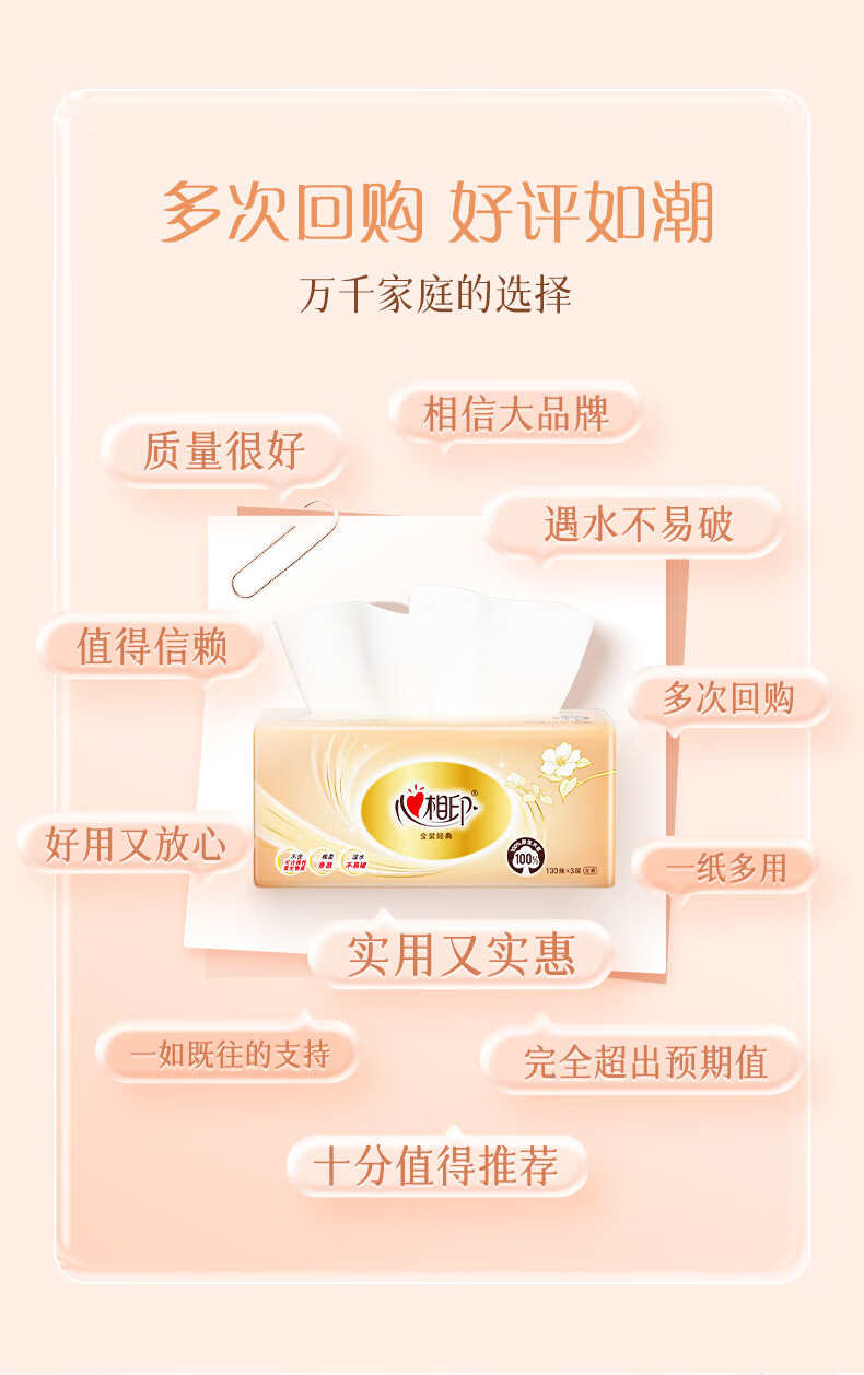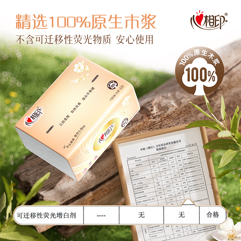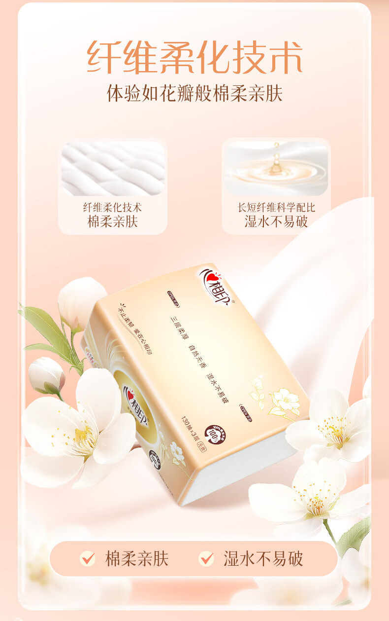 家庭清洁/纸品  > 清洁纸品  > 抽纸  >  心相印  >  心相印抽纸 经典系列 3层130抽*6包S码 100%原生木浆 软抽 纸巾 新旧发 抽纸/提
