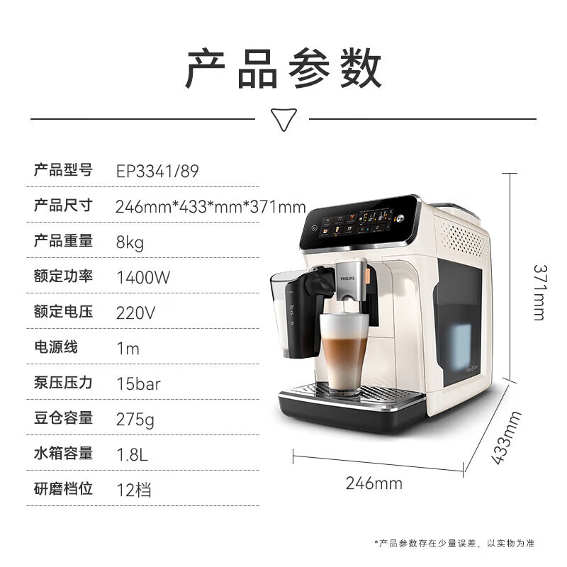 商品名称: 飞利浦云朵咖啡机新3系EP3341/89家用/办公室全自动意式浓缩低温萃取 送礼推荐 EP3341/89/个