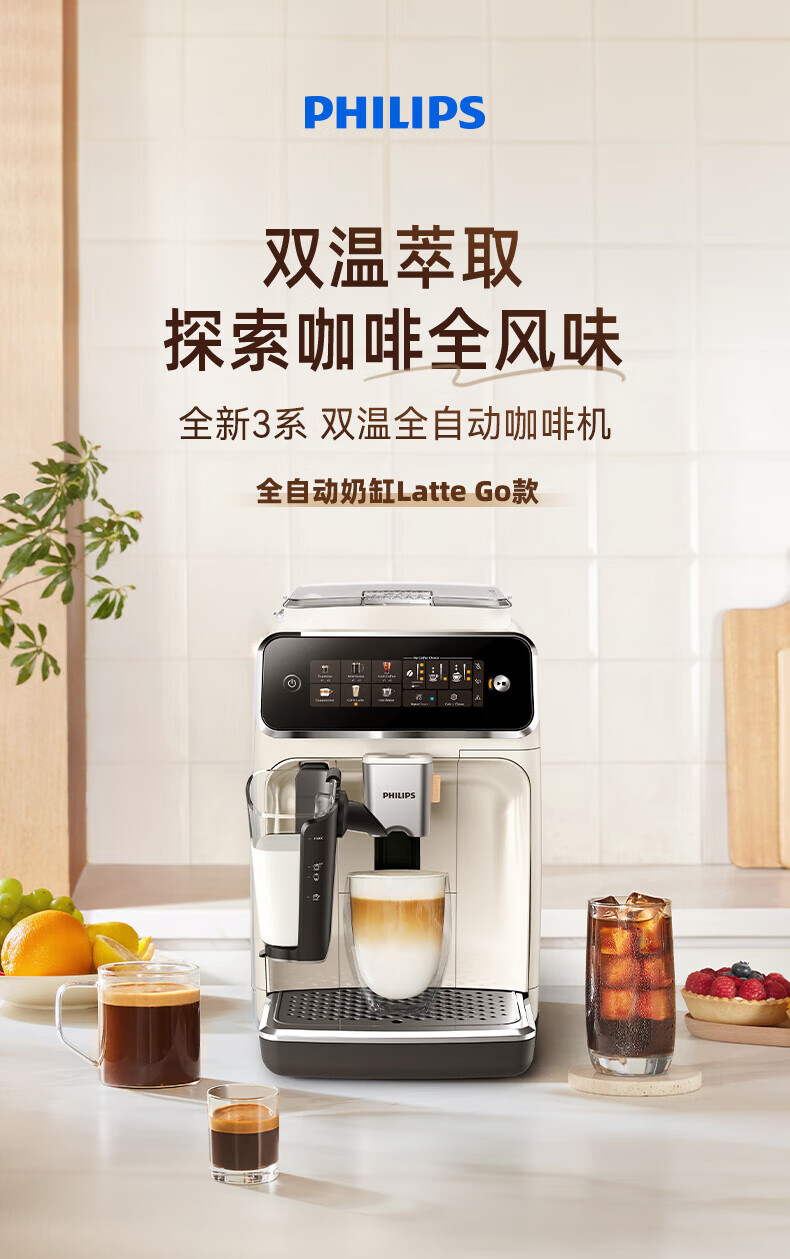 家用电器  > 厨房小电  > 咖啡机及周边配件  >  飞利浦/PHILIPS  >  飞利浦云朵咖啡机新3系EP3341/89家用/办公室全自动意式浓缩低温萃取 送礼推荐 EP3341/89/个