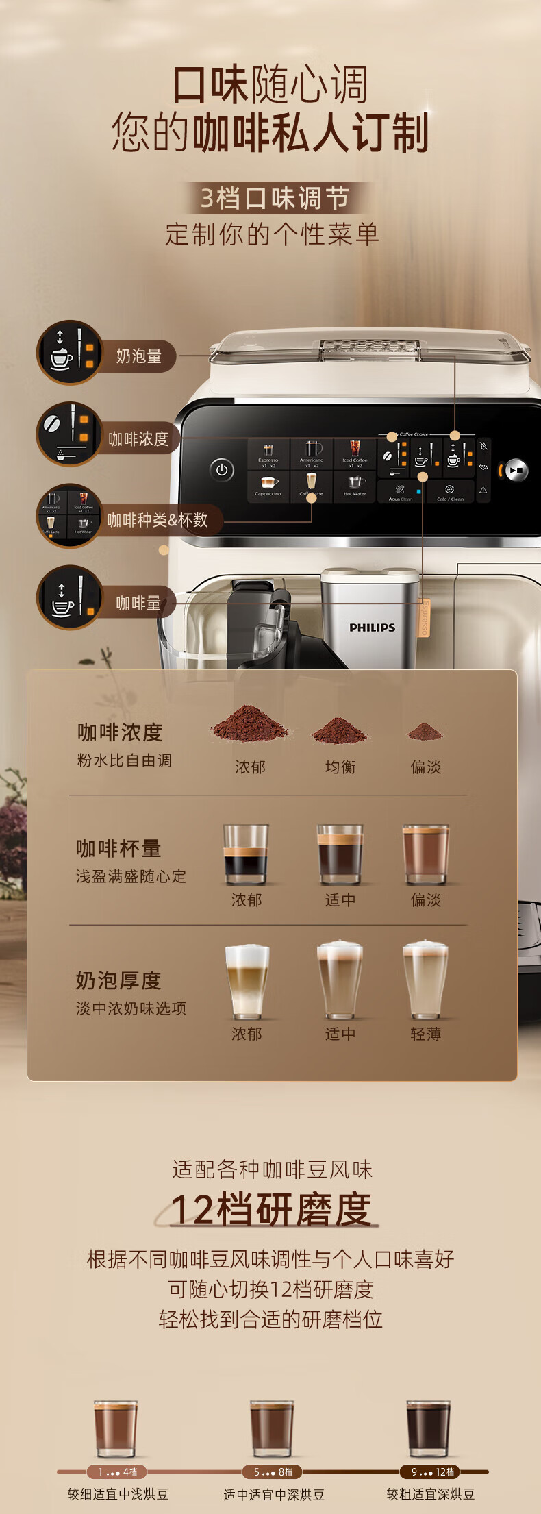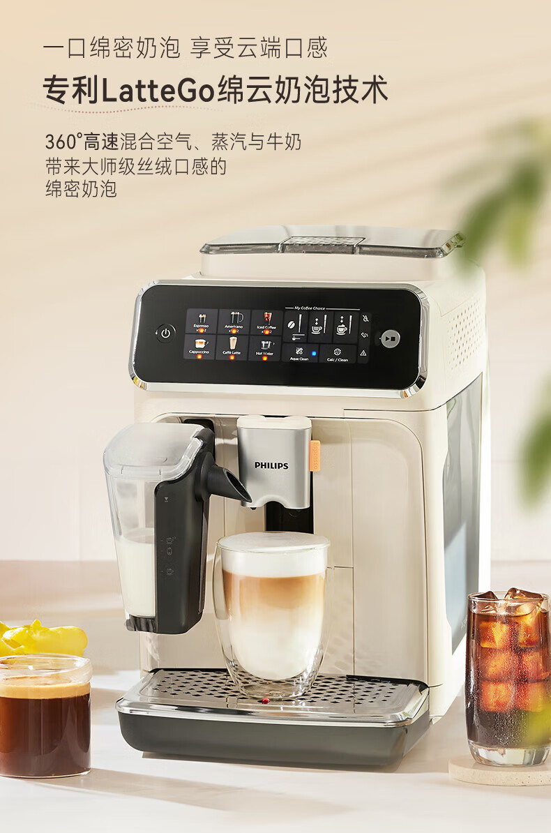 • 商品名称:飞利浦云朵咖啡机新3系EP3341/89家用/办公室全自动意式浓缩低温萃取 送礼推荐 EP3341/89/个