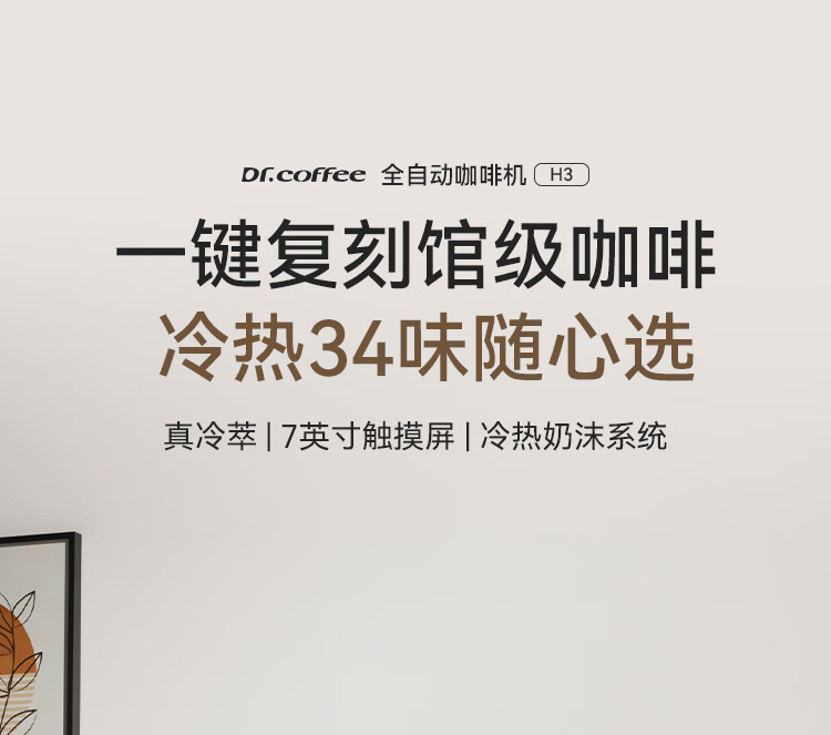 家用电器  > 厨房小电  > 咖啡机及周边配件  >  咖博士/Dr.coffee  >  咖博士H3白色家用咖啡机全自动意式家用小型研磨一体式一键真冷萃新鲜咖啡冷热饮品【新年礼物】 H3/台