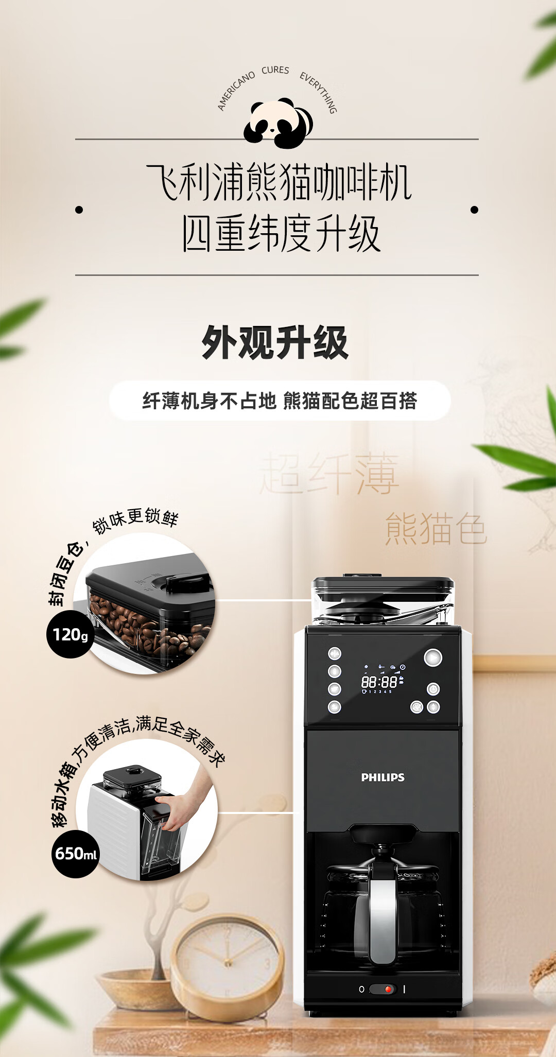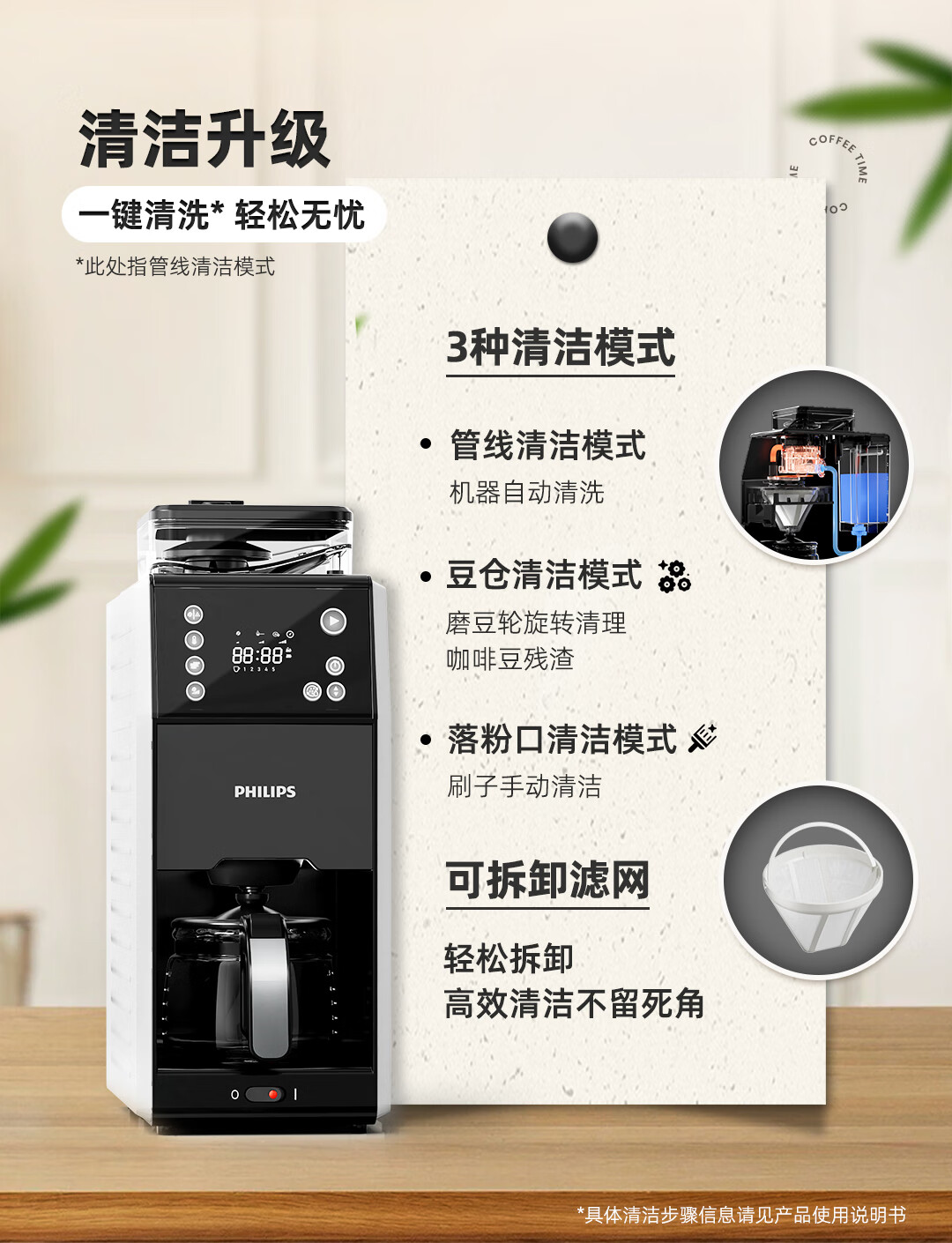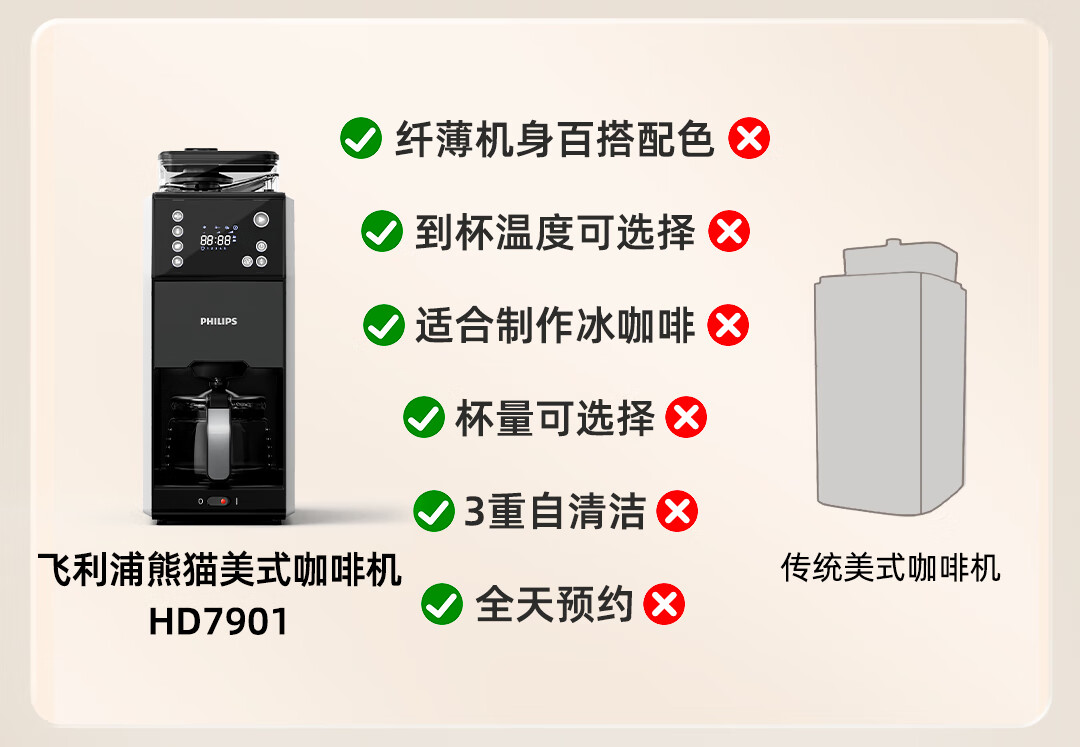 商品名称: 飞利浦(PHILIPS)全自动美式咖啡机家用全自动清洗3档研磨一体机办公室咖啡机可拆卸式【7751升级款】HD7901/10 HD7901/台