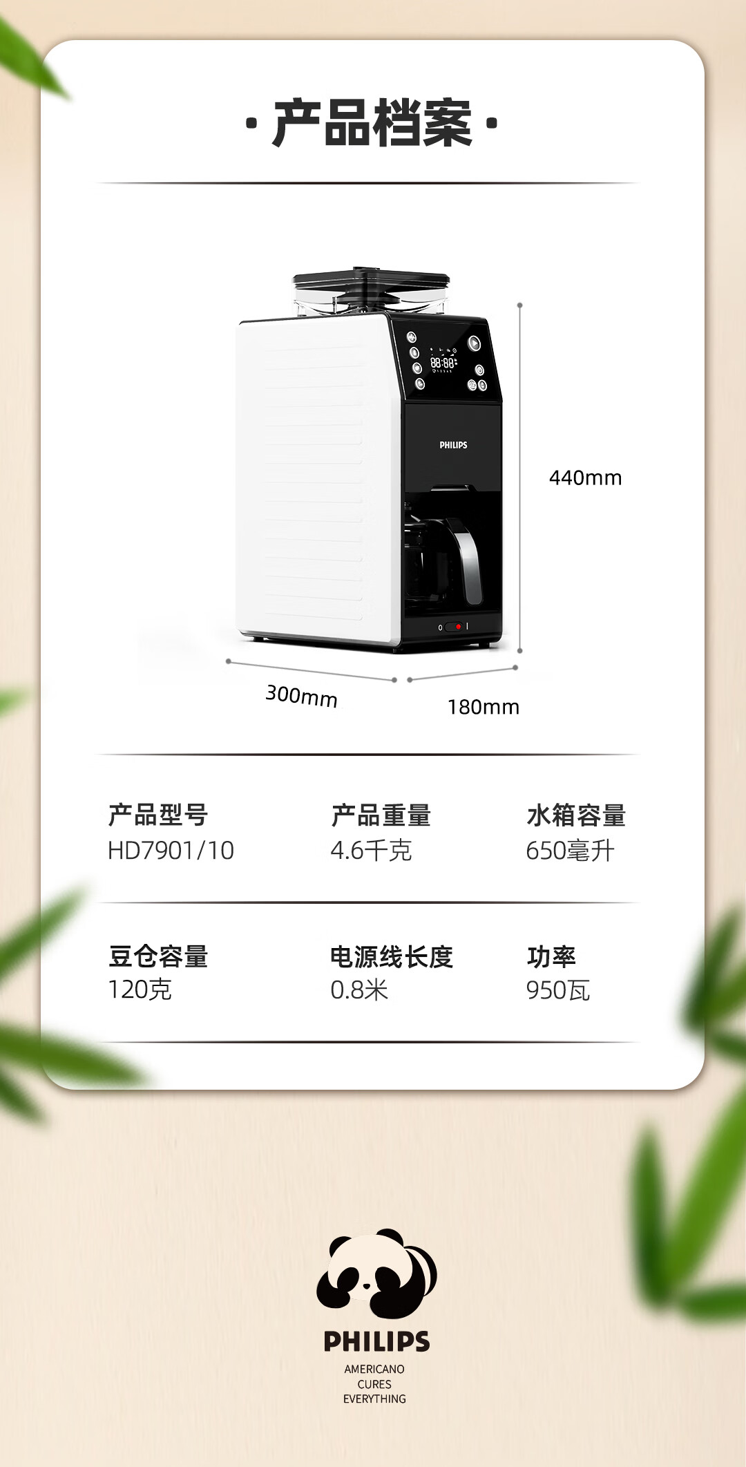 • 商品名称:飞利浦(PHILIPS)全自动美式咖啡机家用全自动清洗3档研磨一体机办公室咖啡机可拆卸式【7751升级款】HD7901/10 HD7901/台