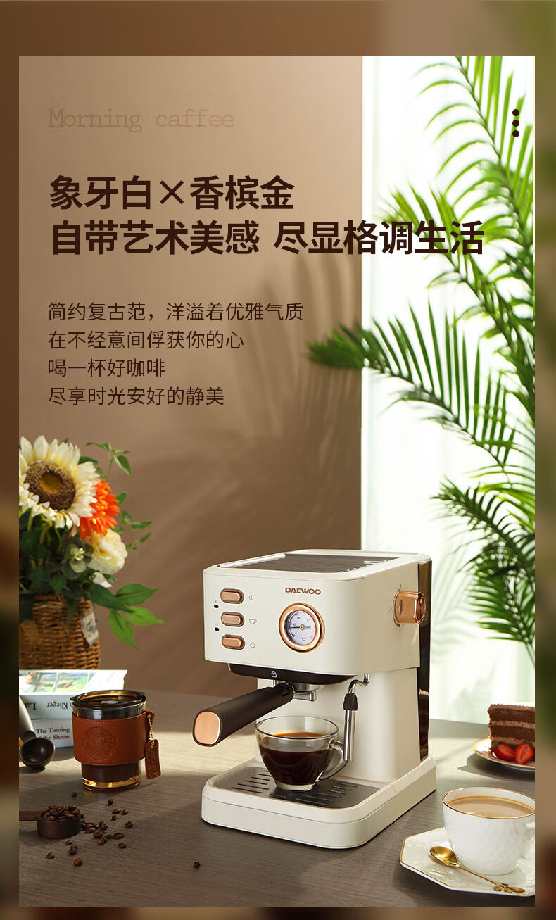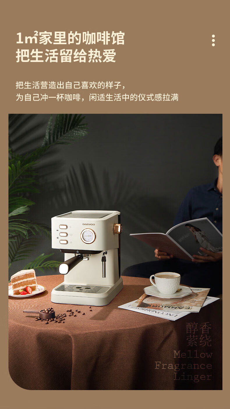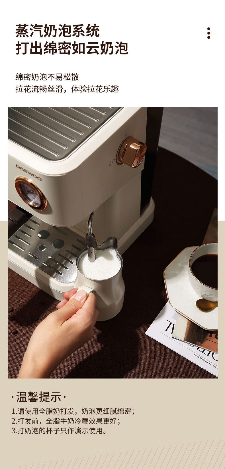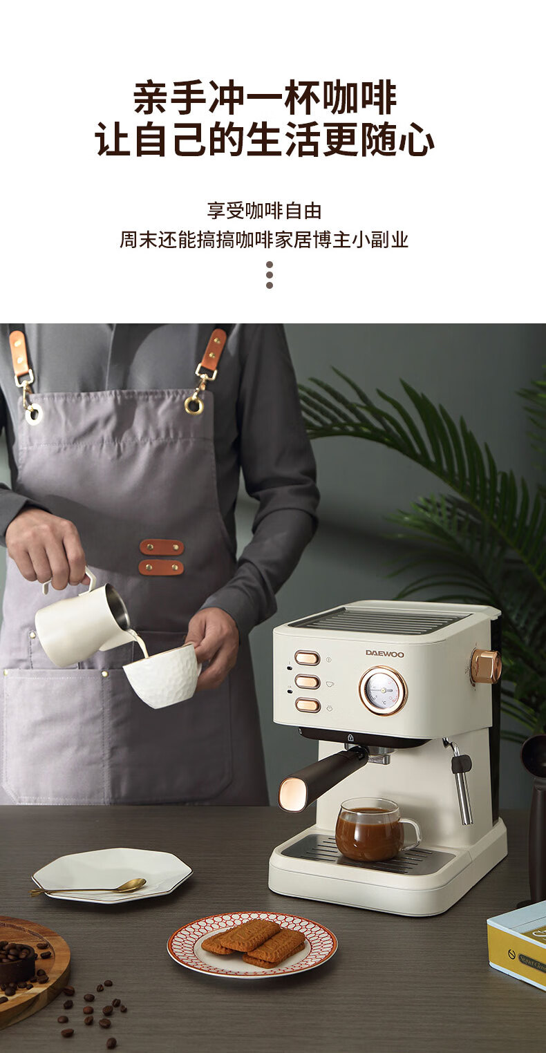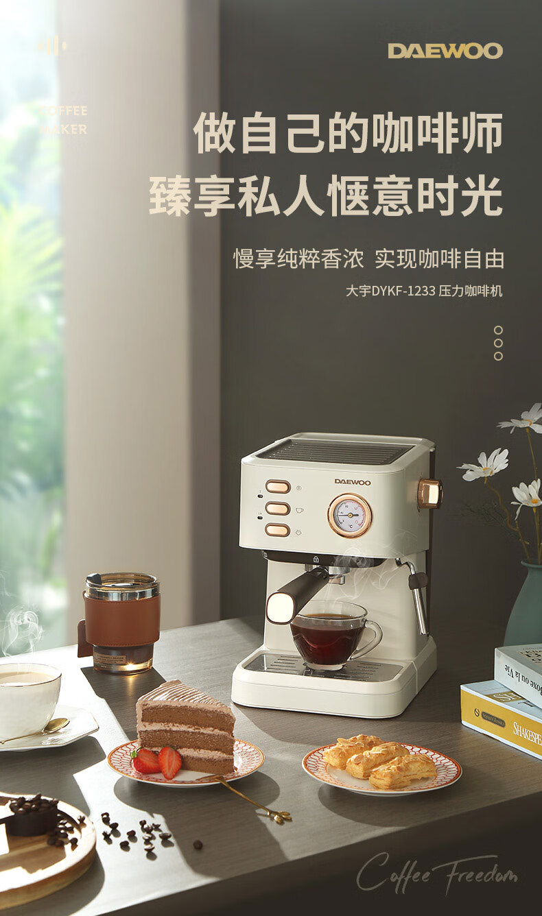 大宇(DAEWOO)咖啡机家用办公室意式打奶泡小型压力咖啡机 DYKF-1233 DYKF-1233/个
