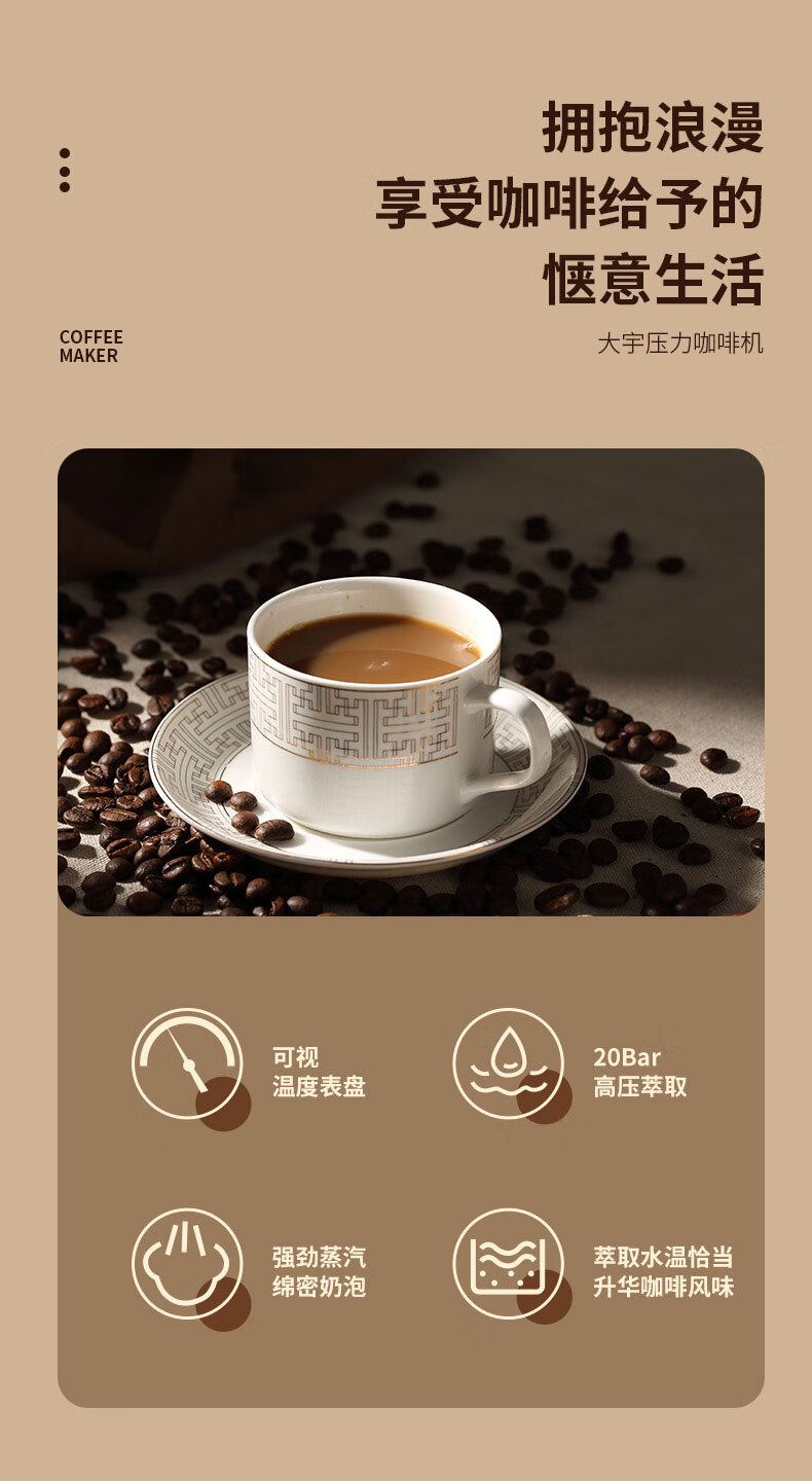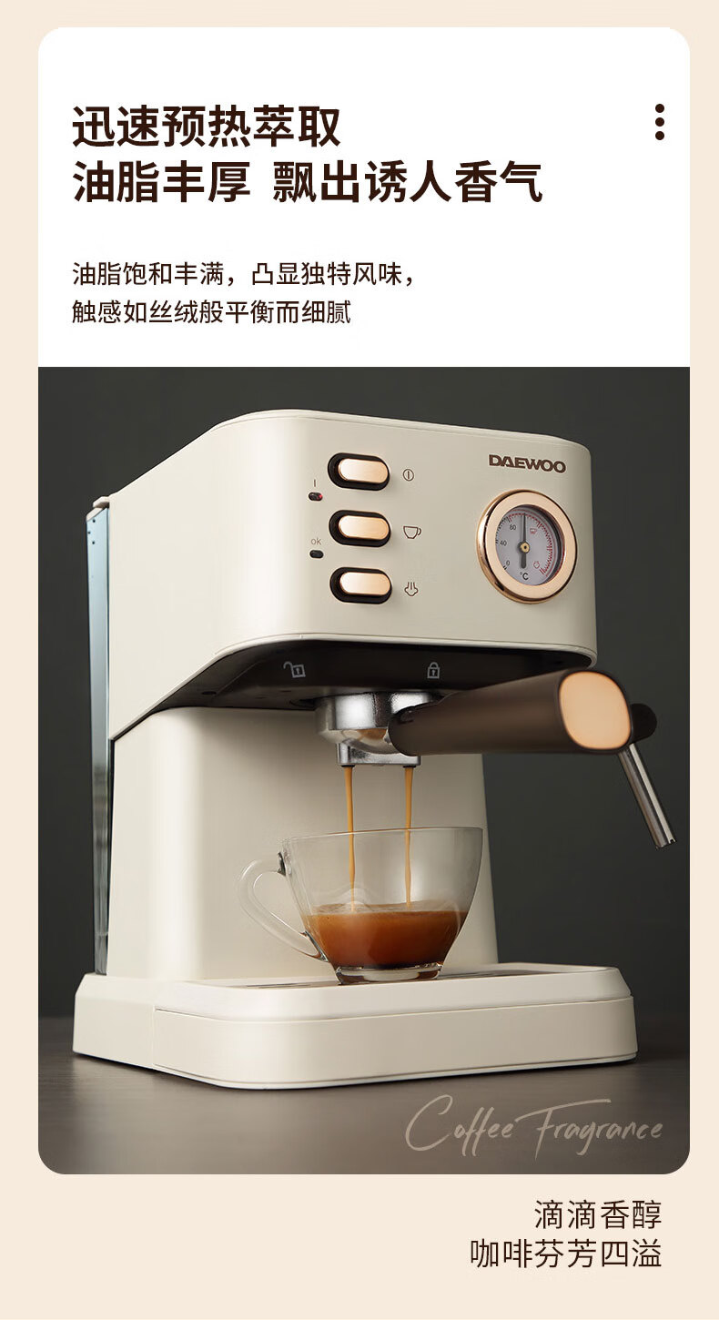 • 商品名称:大宇(DAEWOO)咖啡机家用办公室意式打奶泡小型压力咖啡机 DYKF-1233 DYKF-1233/个