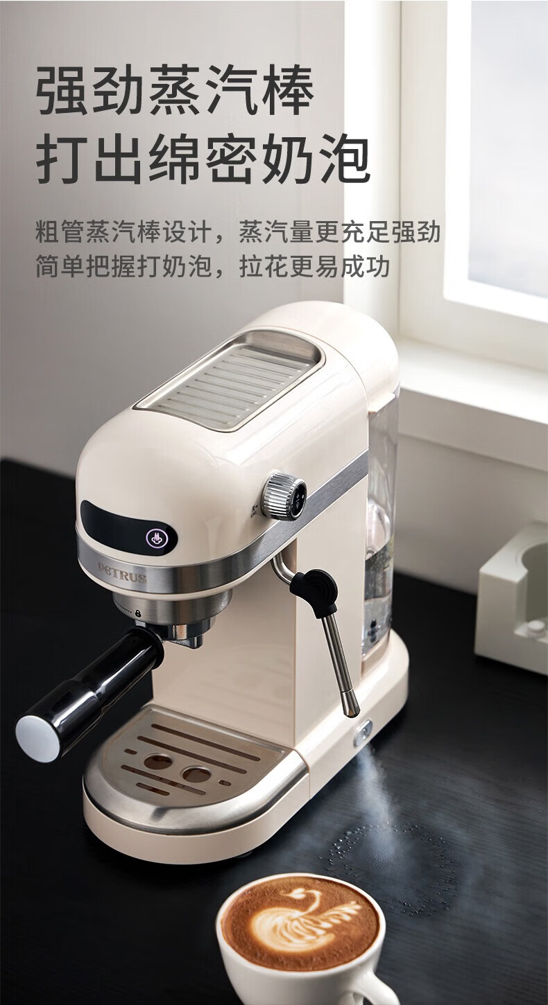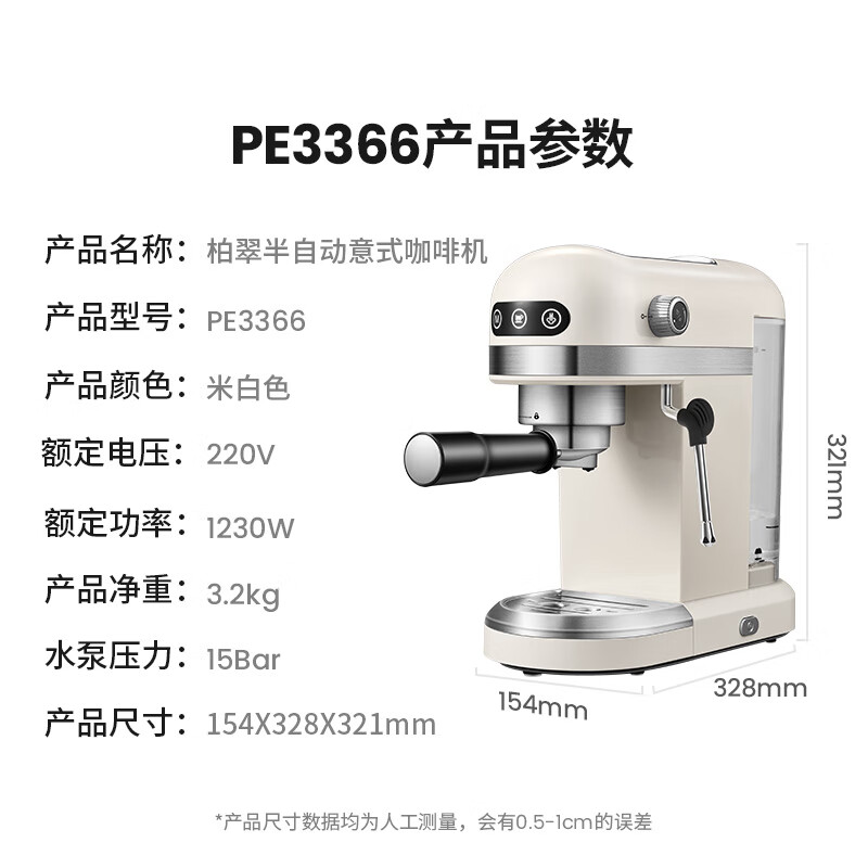 • 商品名称:柏翠(petrus) 咖啡机小白醒醒意式浓缩咖啡机全半自动家用小型打奶泡PE3366 新年礼物 PE3366/台