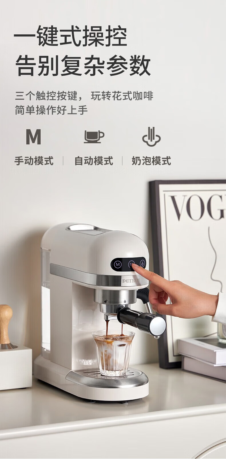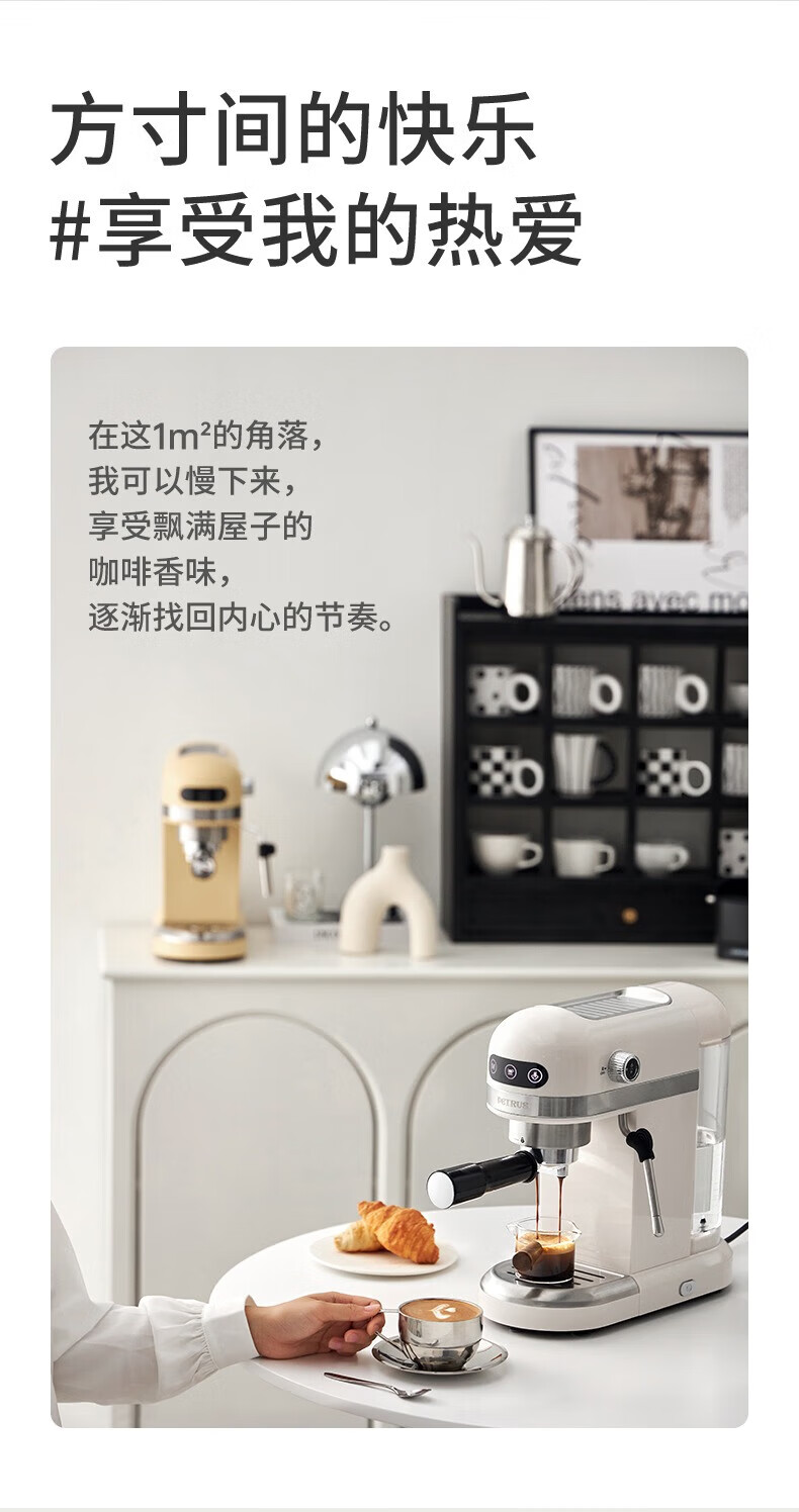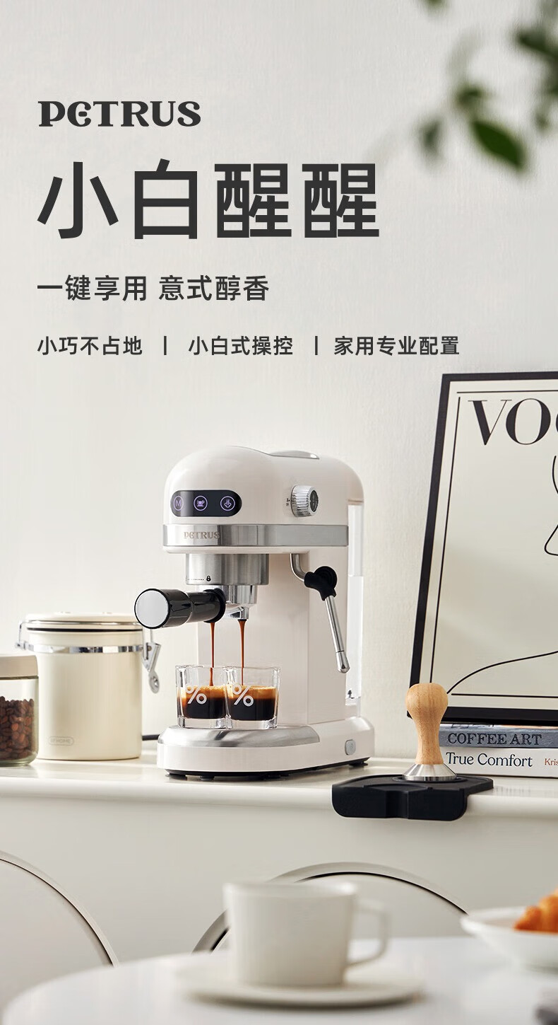 家用电器  > 厨房小电  > 咖啡机及周边配件  >  柏翠/petrus  >  柏翠(petrus) 咖啡机小白醒醒意式浓缩咖啡机全半自动家用小型打奶泡PE3366 新年礼物 PE3366/台