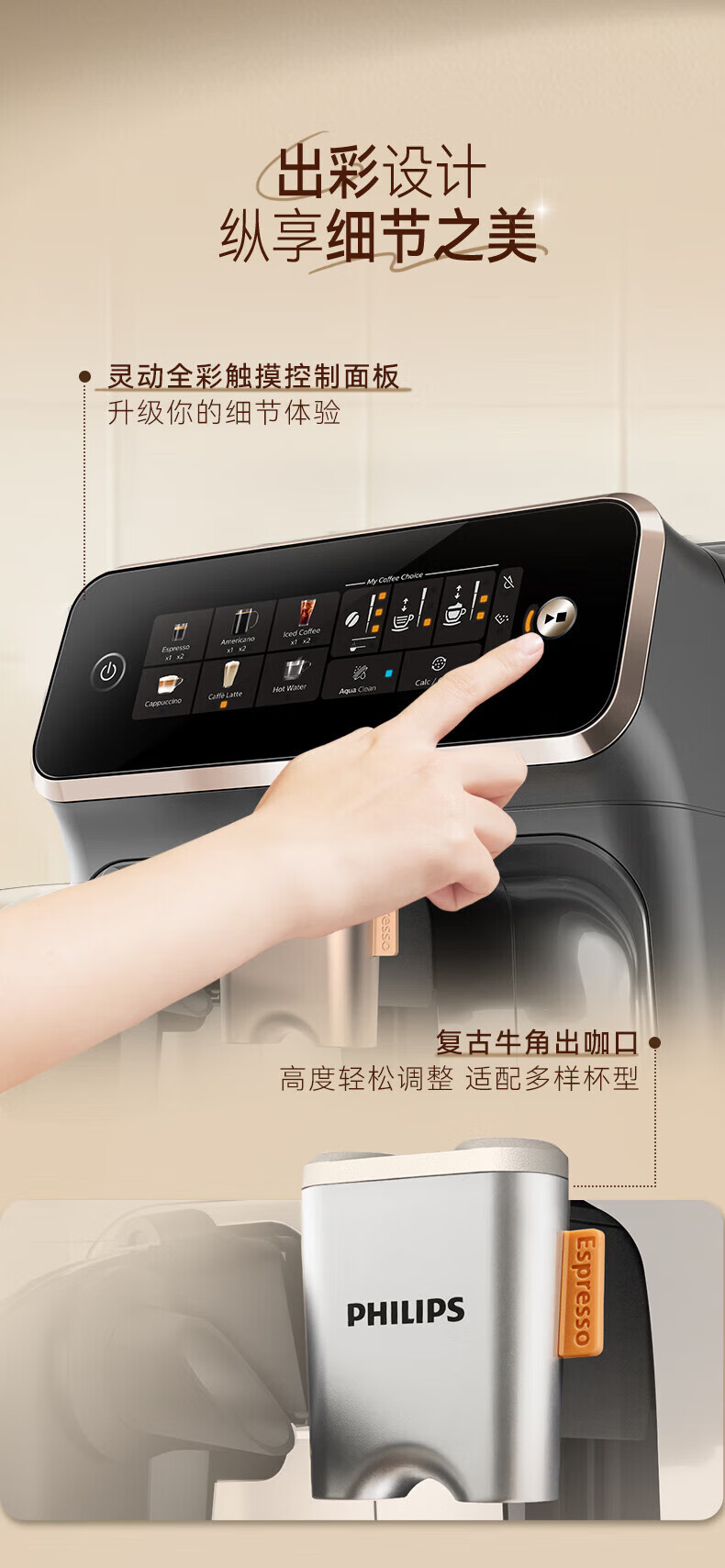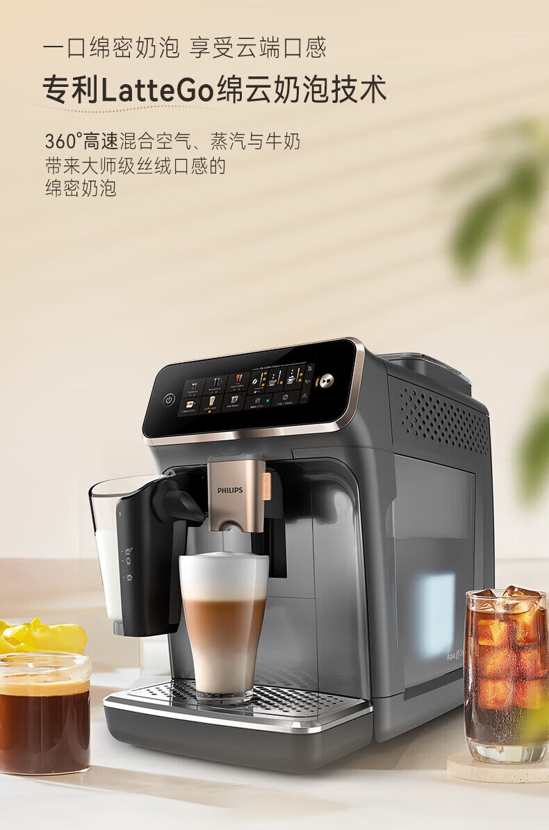 商品名称: 飞利浦云朵咖啡机新3系EP3341/62家用/办公室全自动意式浓缩萃取研磨一体 送礼推荐 EP3341/台