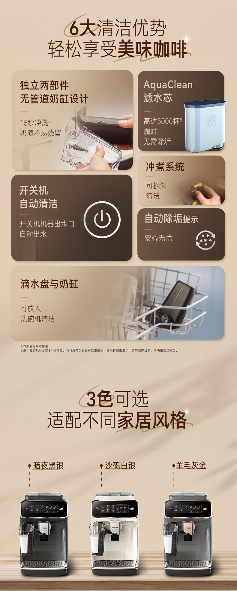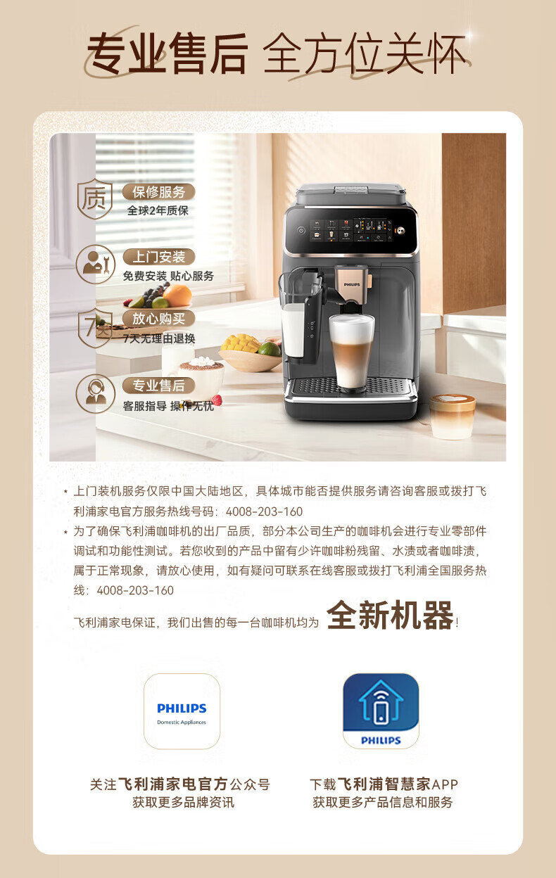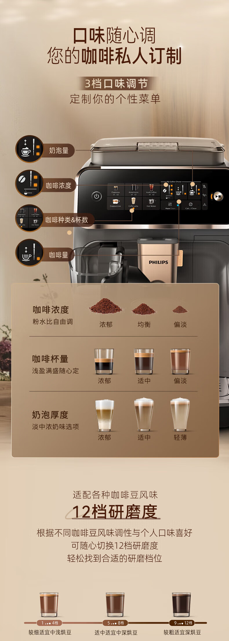 • 商品名称:飞利浦云朵咖啡机新3系EP3341/62家用/办公室全自动意式浓缩萃取研磨一体 送礼推荐 EP3341/台