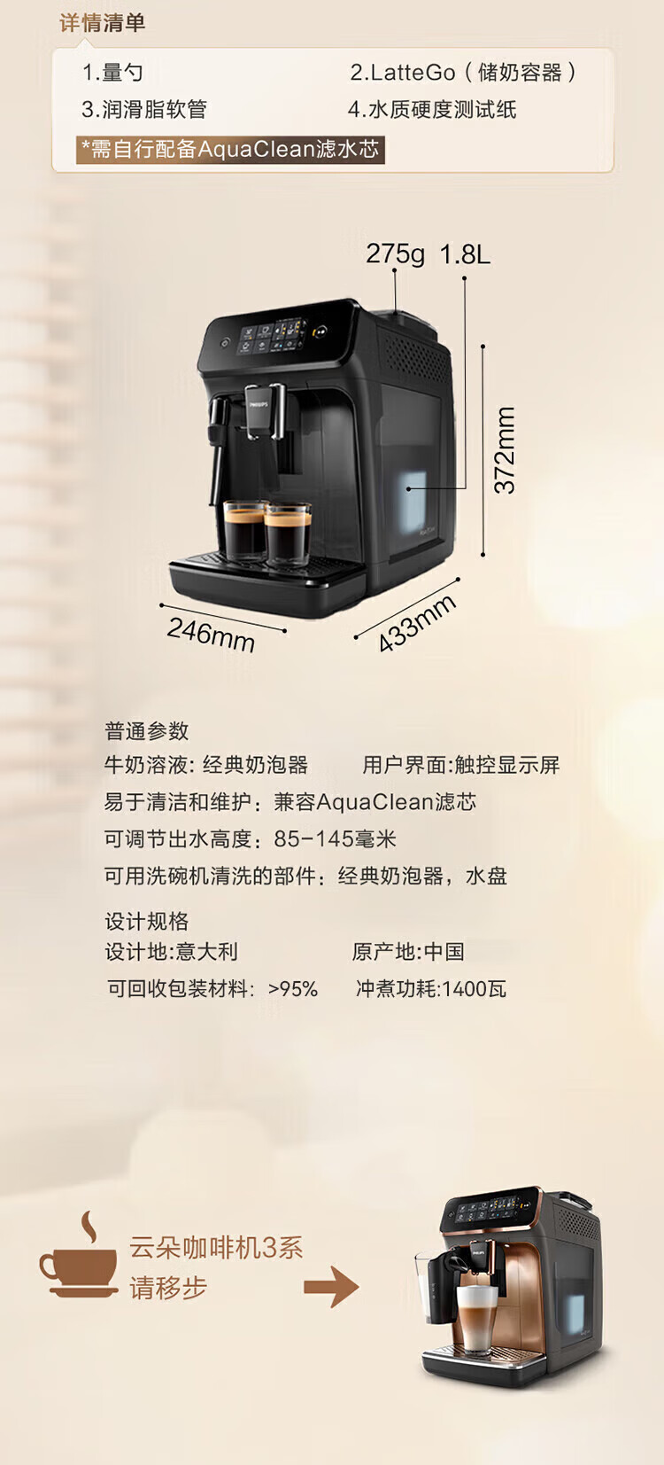 • 商品名称:飞利浦咖啡机 EP1221/82 台 EP1221/台