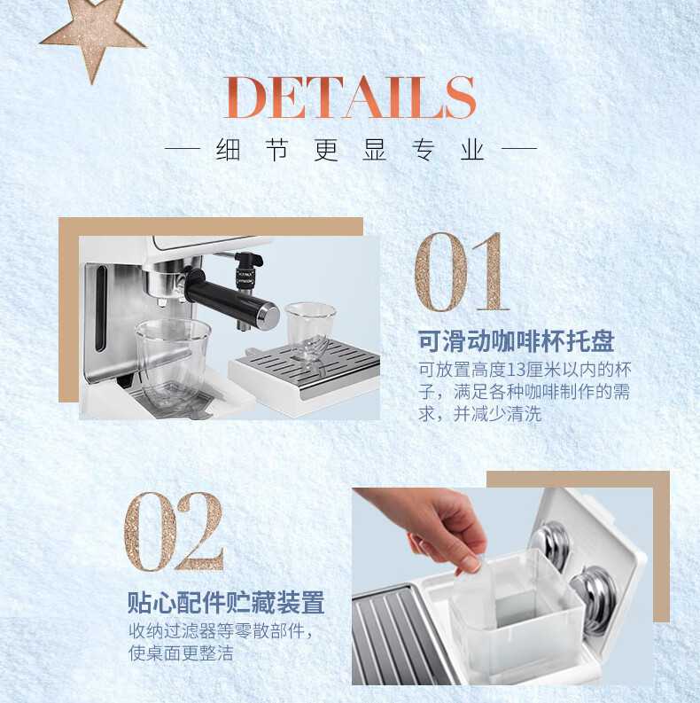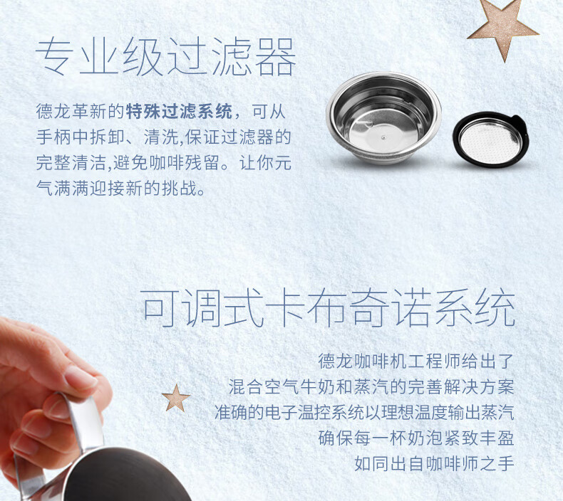 • 商品名称:德龙(Delonghi)咖啡机 家用半自动咖啡机 美式意式浓缩小型15bar泵压式 手动可调节奶泡 ECP35.31.W 白色新年礼物 ECP35.31.W/台