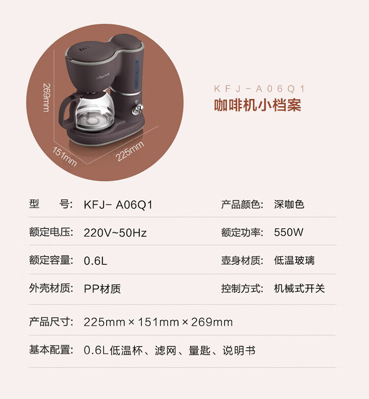 商品名称: 小熊(Bear)咖啡机美式家用600ml滴漏式小型迷你煮茶器泡茶壶电热水壶煮咖啡壶 KFJ-A06Q1 新年礼物 KFJ-A06Q1/个