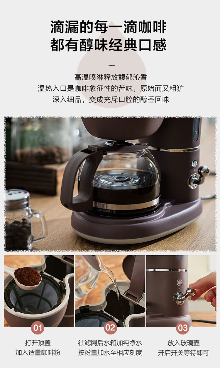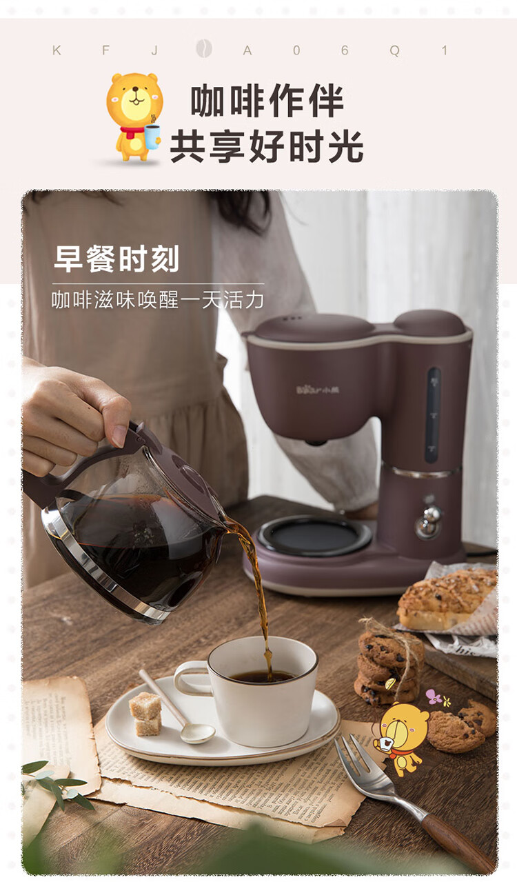 家用电器  > 厨房小电  > 咖啡机及周边配件  >  小熊/Bear  >  小熊(Bear)咖啡机美式家用600ml滴漏式小型迷你煮茶器泡茶壶电热水壶煮咖啡壶 KFJ-A06Q1 新年礼物 KFJ-A06Q1/个