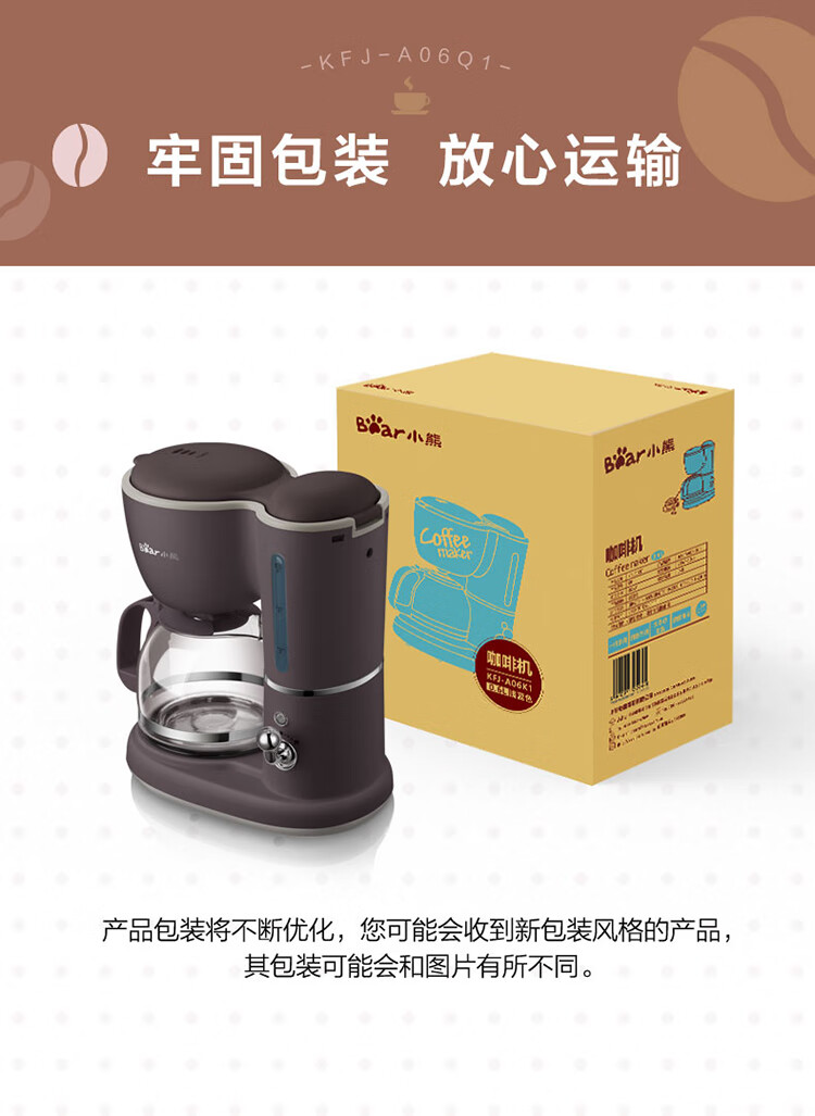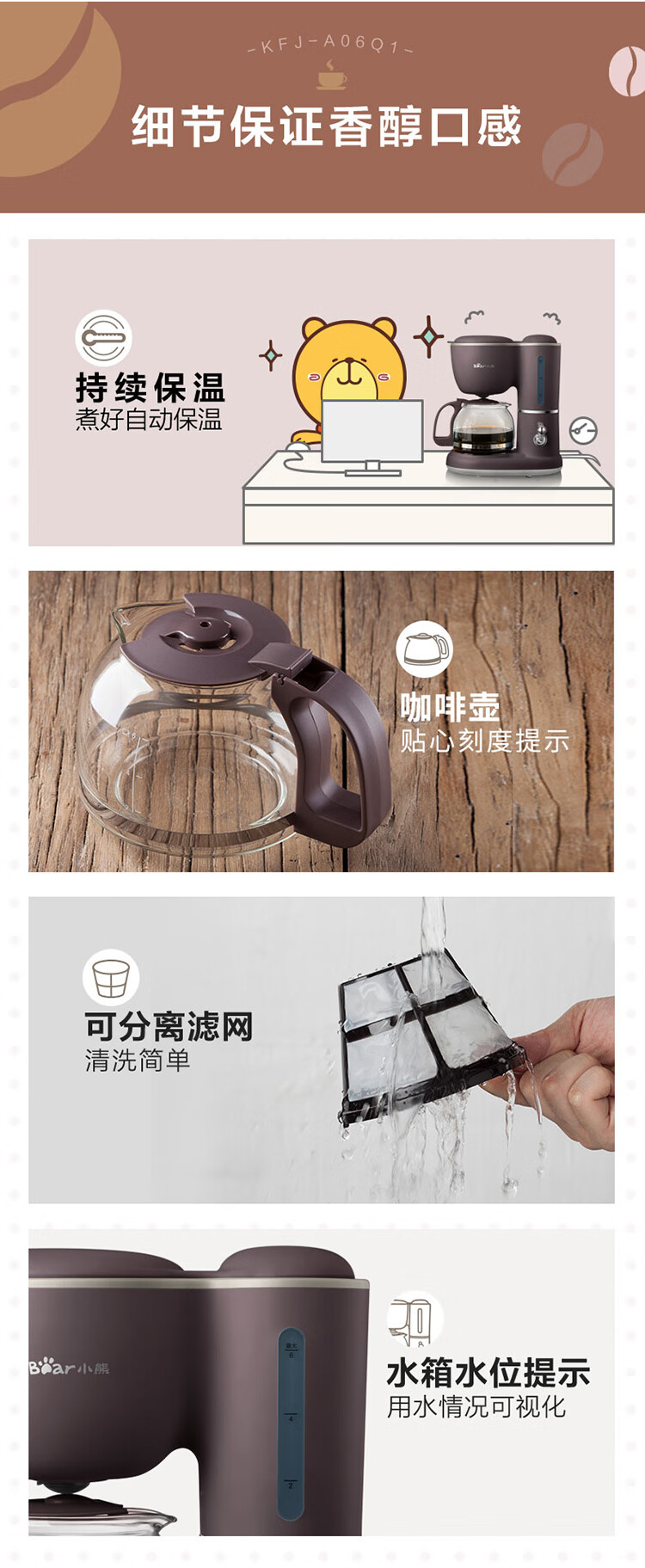 • 商品名称:小熊(Bear)咖啡机美式家用600ml滴漏式小型迷你煮茶器泡茶壶电热水壶煮咖啡壶 KFJ-A06Q1 新年礼物 KFJ-A06Q1/个