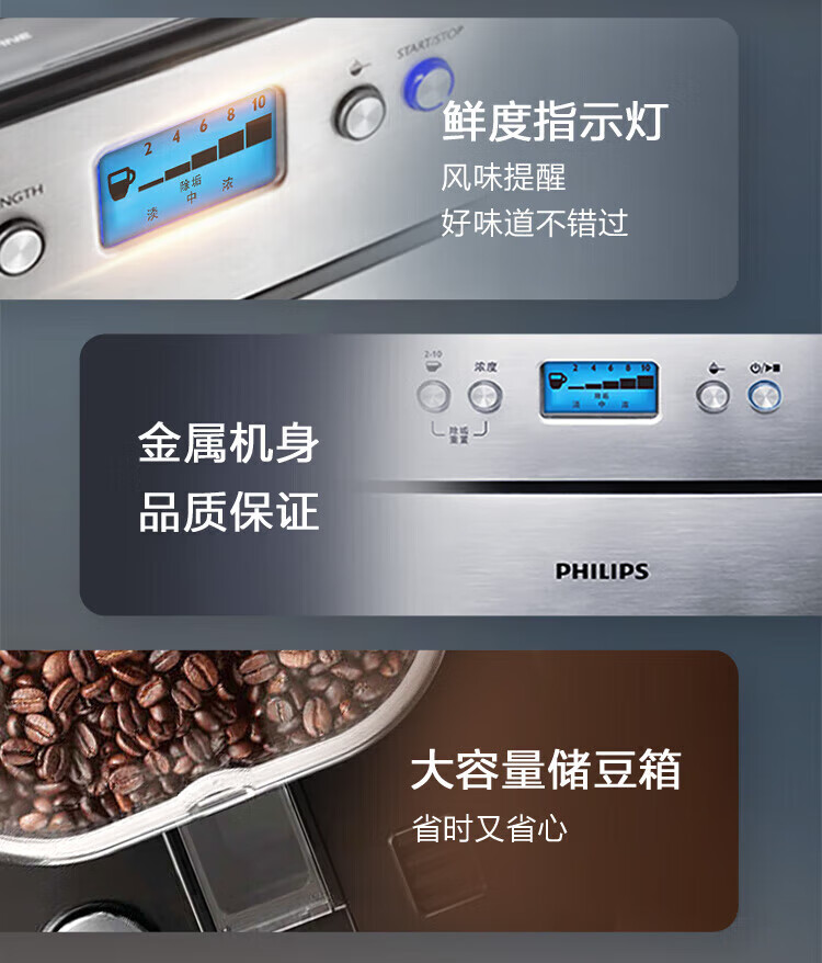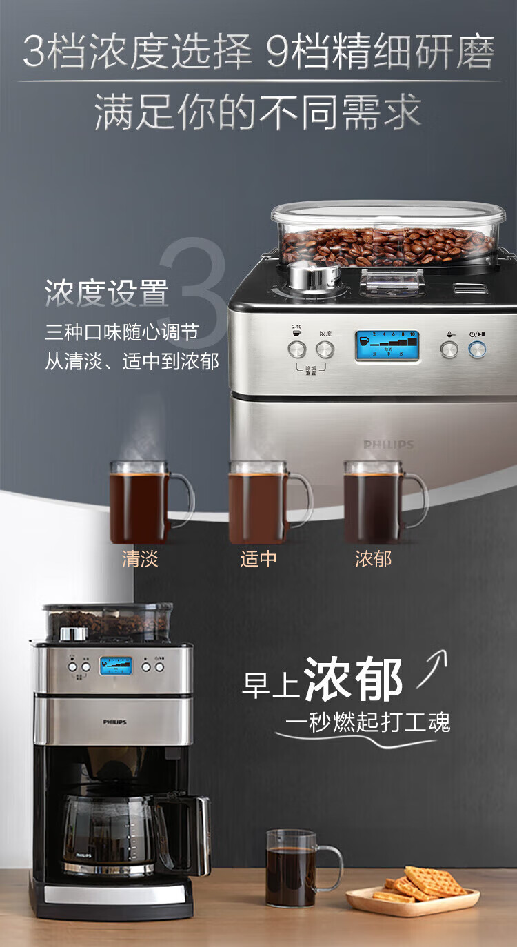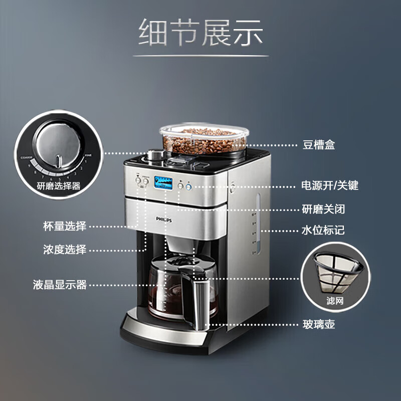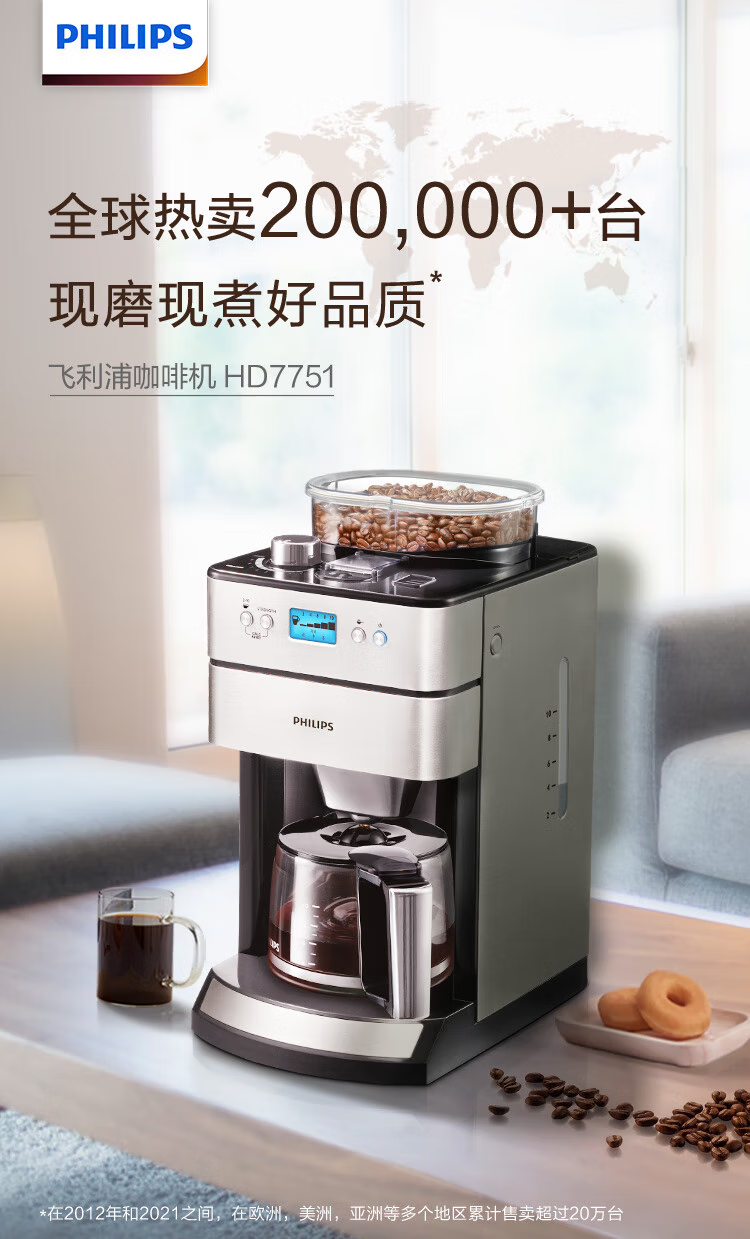 • 商品名称:飞利浦咖啡机全自动咖啡机豆粉两用家用/办公室美式研磨一体机磨豆机现磨实用礼品礼物HD7751/00 HD7751/00/个
