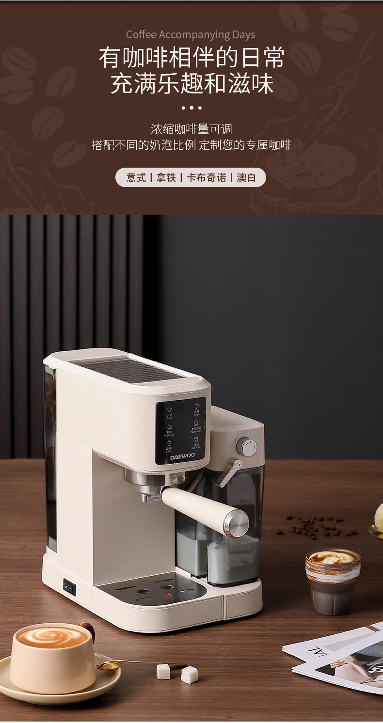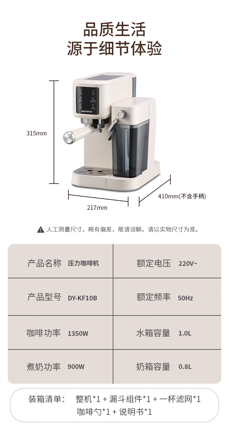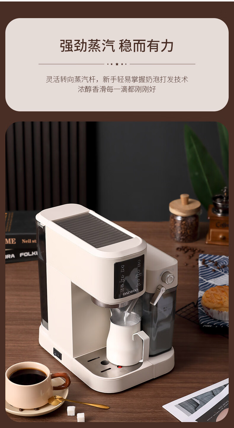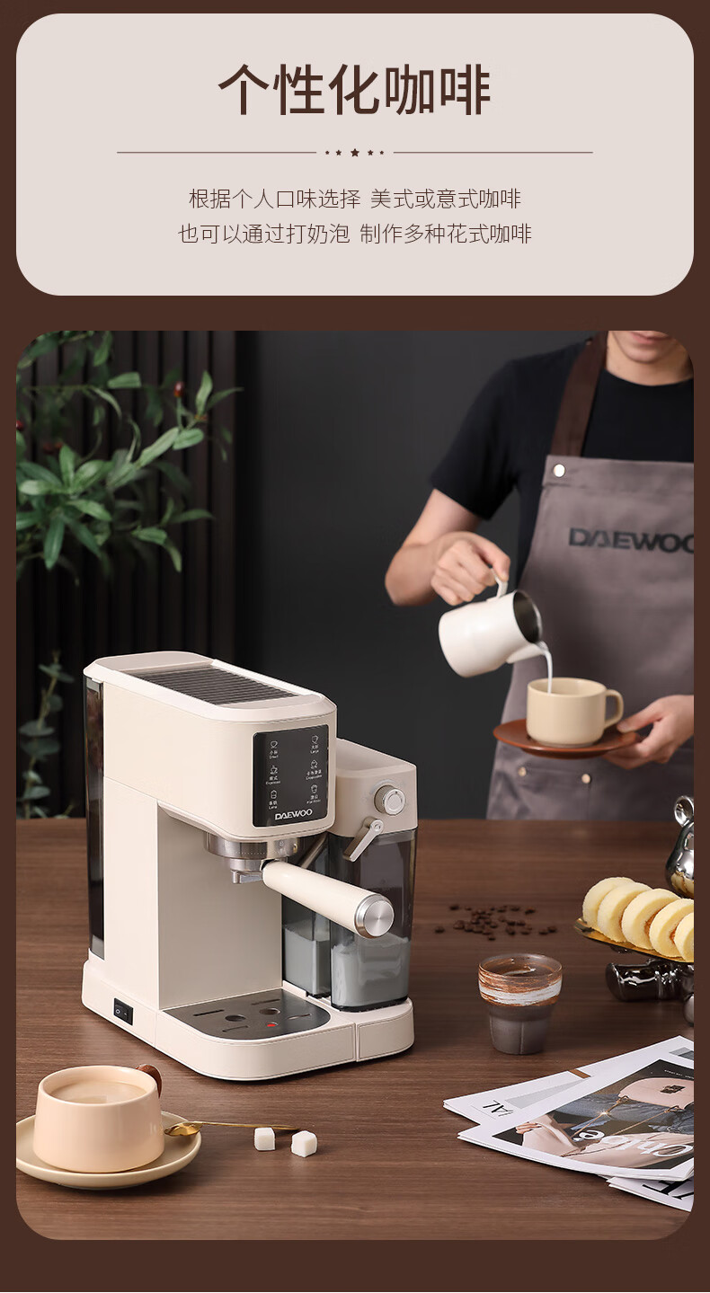 商品名称: 大宇(DAEWOO)咖啡机家用办公室意式打奶泡小型压力咖啡机 DY-KF10B DY-KF10B/个