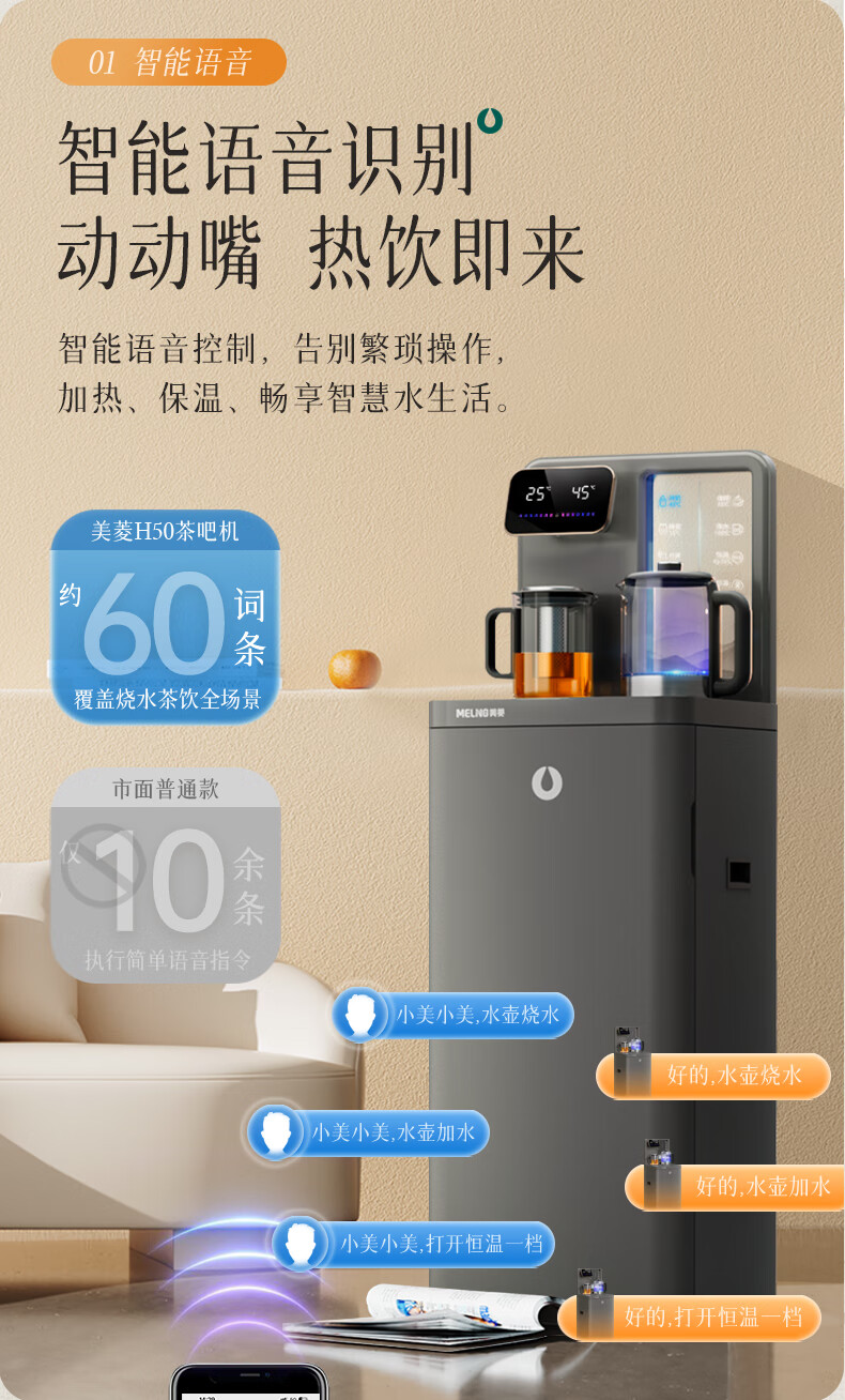 商品名称: 美菱(MeiLing)家用办公室饮水机茶吧机底部上水长时间保温高硼硅烧水壶语音操控大箱体 MC-H50B 冷热型ZMD系列 MC-H50B/台