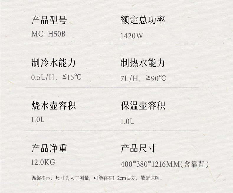 • 商品名称:美菱(MeiLing)家用办公室饮水机茶吧机底部上水长时间保温高硼硅烧水壶语音操控大箱体 MC-H50B 冷热型ZMD系列 MC-H50B/台