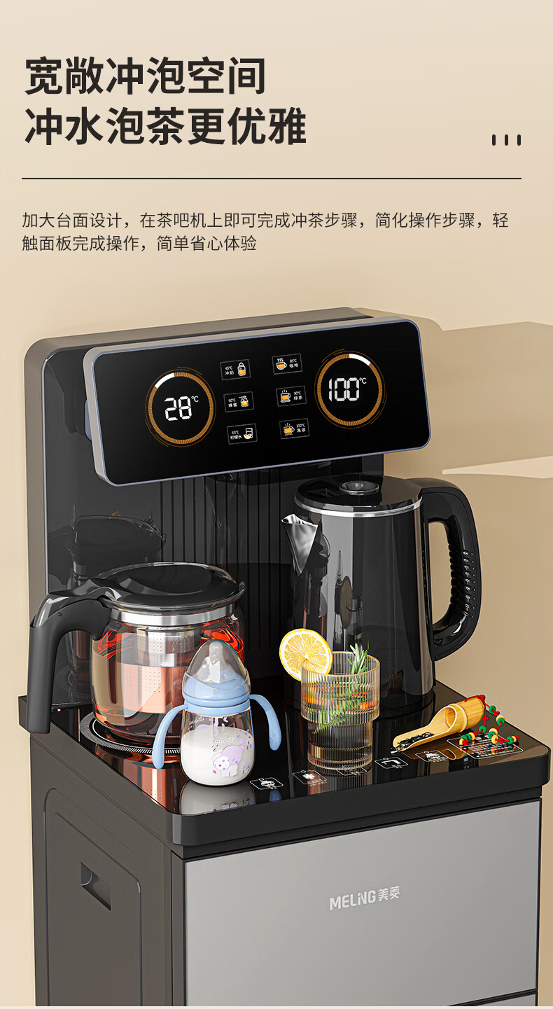 • 商品名称:美菱(MeiLing)茶吧机家用饮水机遥控智能【双温双显双出水口】下置水桶立式泡茶机冷热款MY-C919-B MY-C919-B/台