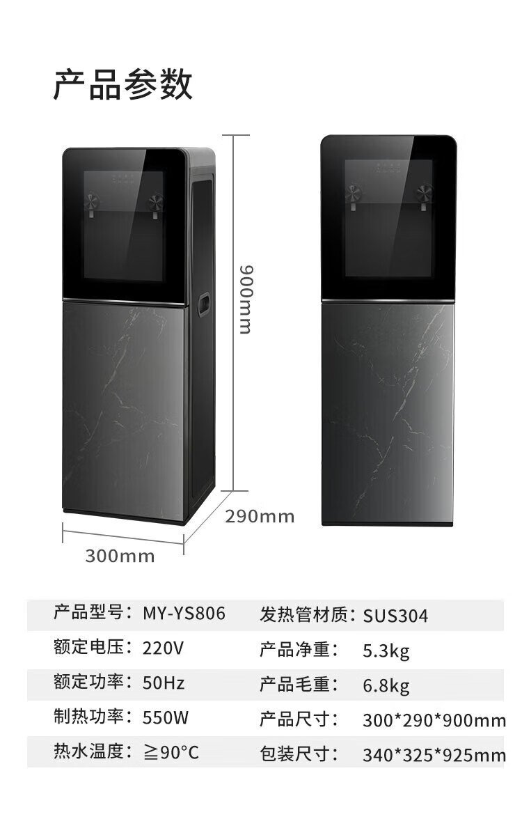 包装清单: 美菱 饮水机 温热型 MY-YS806 办公家用下置水桶立式饮水机 快速加热/缺水提醒/独立双出水